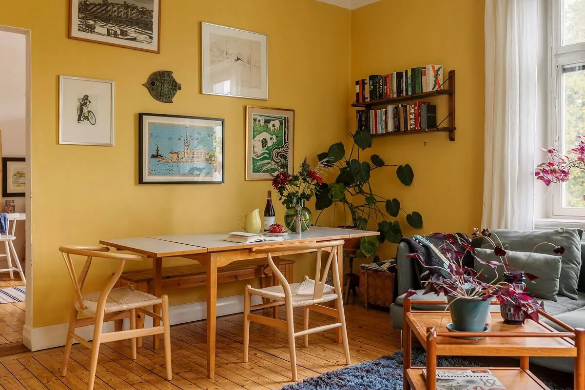 Желтые стены и яркие постеры: жизнерадостный интерьер в Швеции