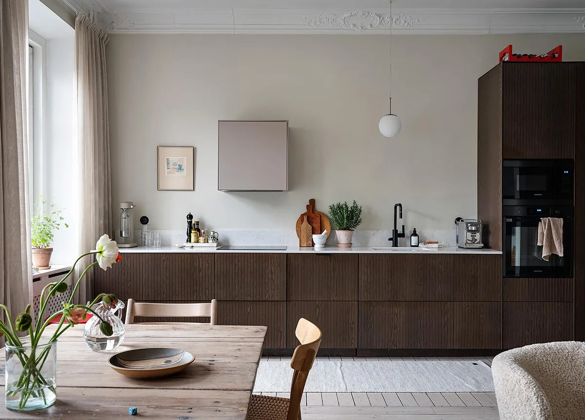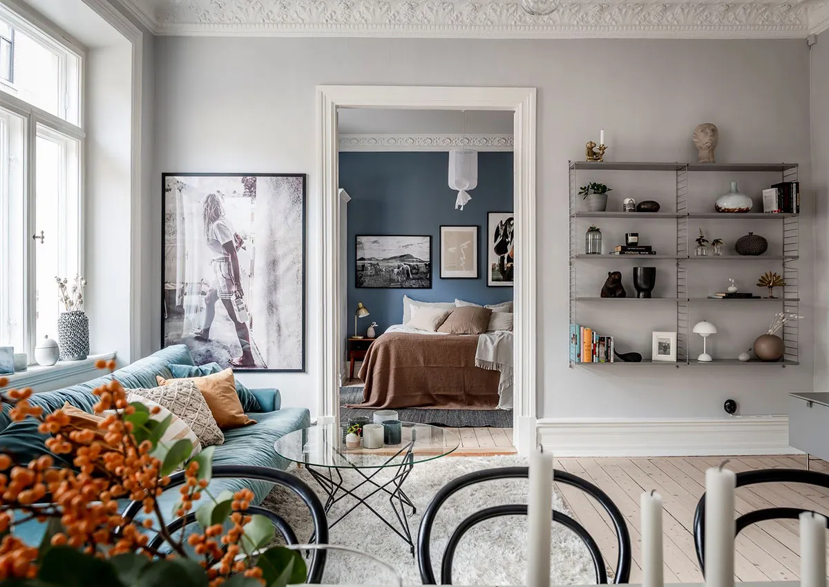 Лепнина, цветной потолок и стильный декор: квартира в Стокгольме (90 кв. м)