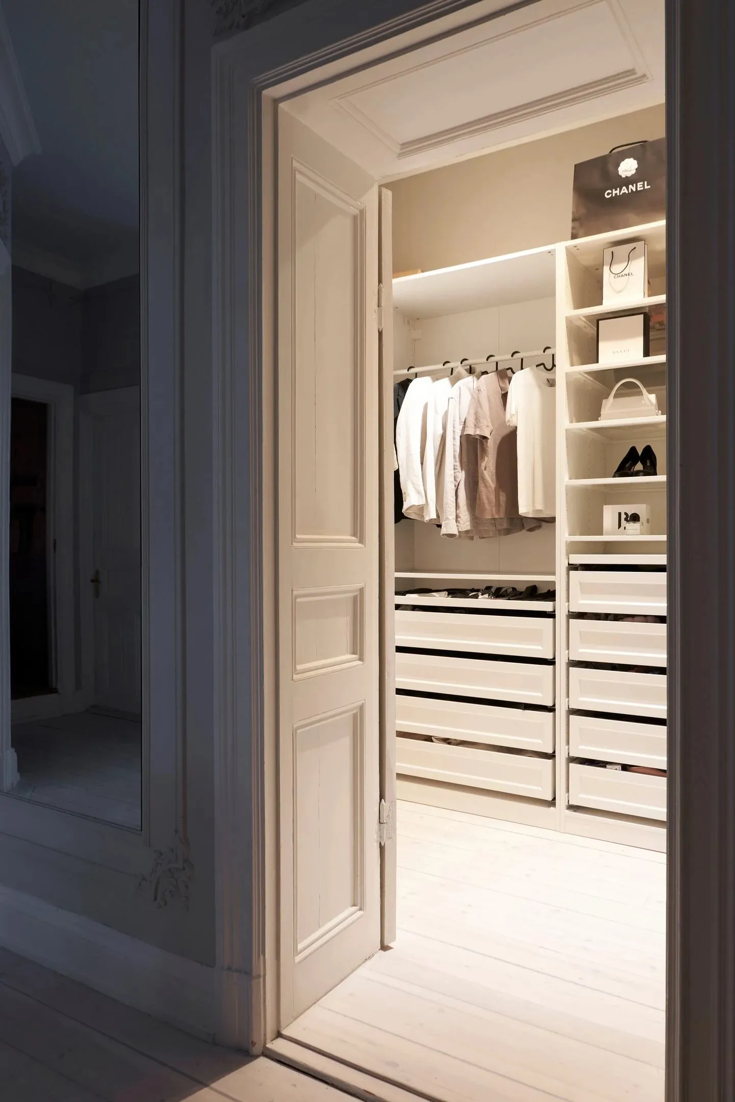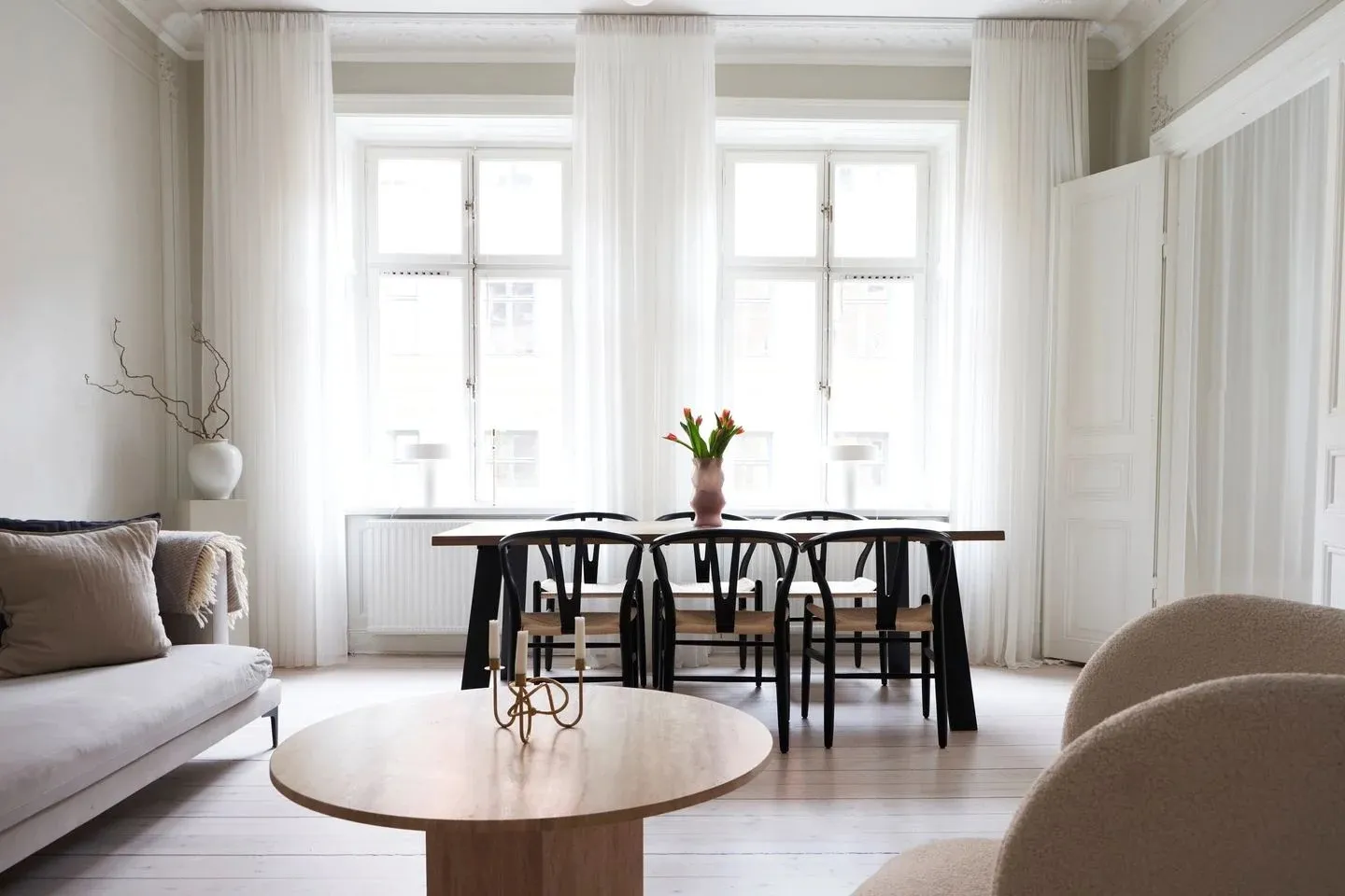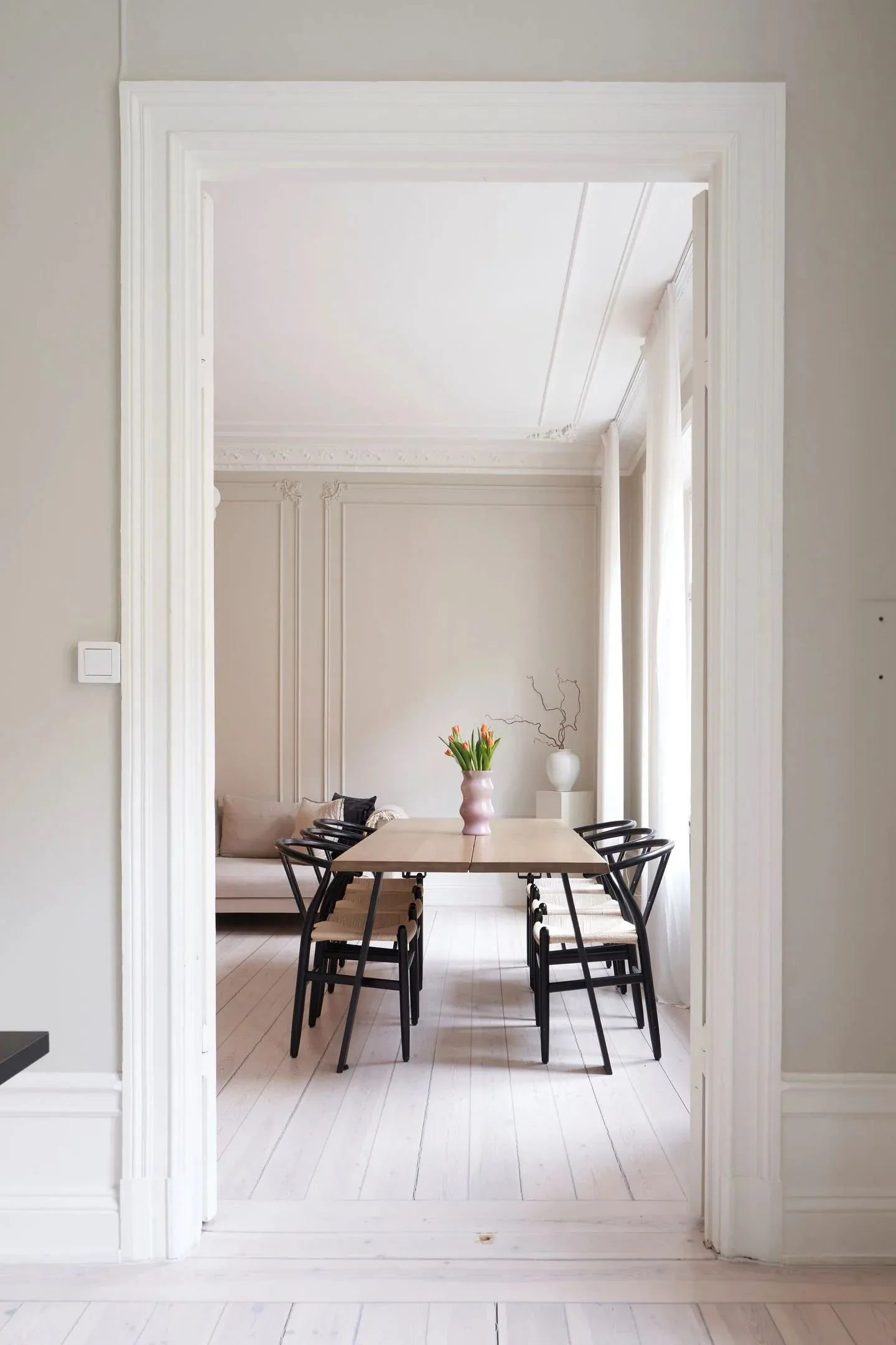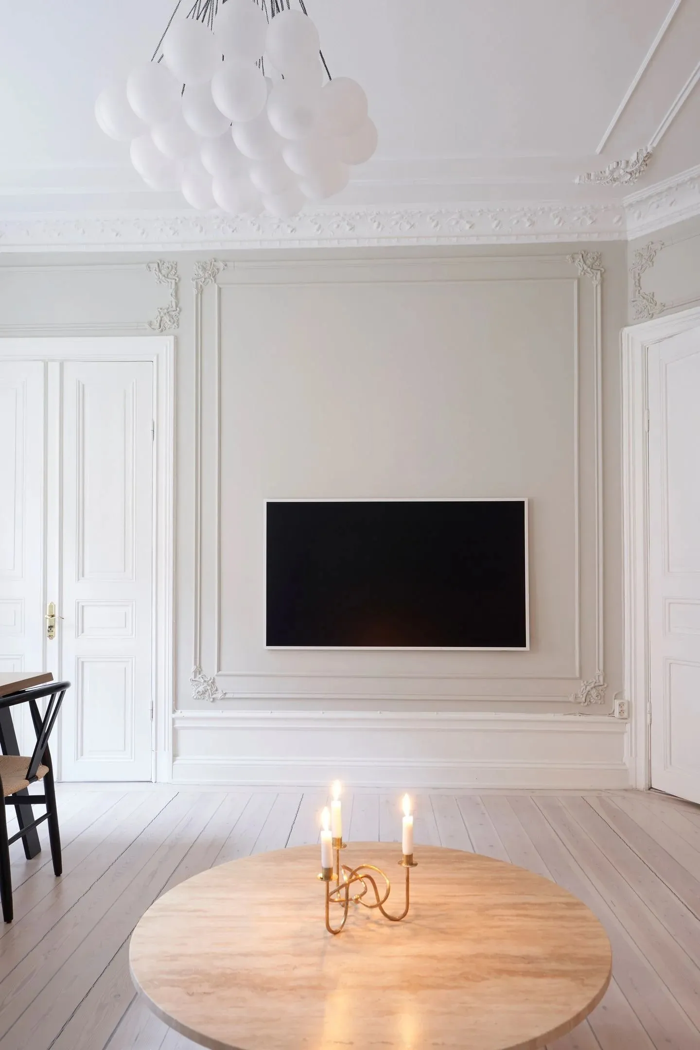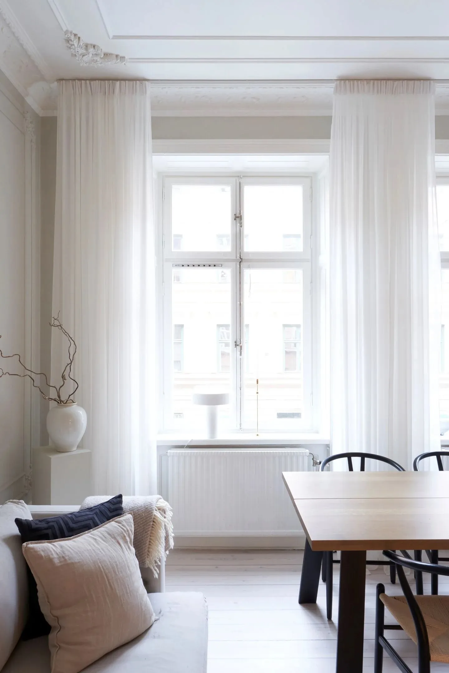 У этой шведской квартиры ярко выраженная классическая основа в виде элегантных настенных молдингов и лепнины, которые украшают комнаты с высокими потолками, огромными окнами и старинным печкам.