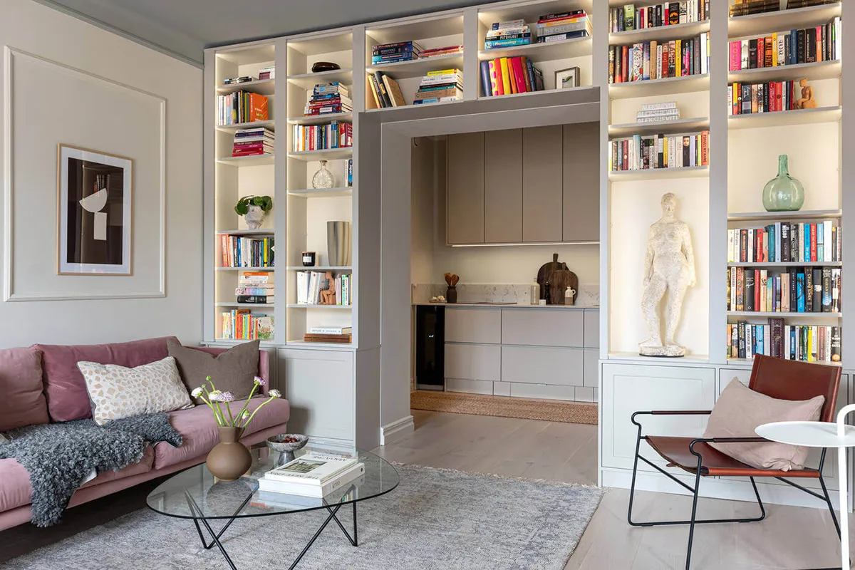 Серый потолок и библиотека: элегантная квартира с изюминкой в Стокгольме (69 кв. м)