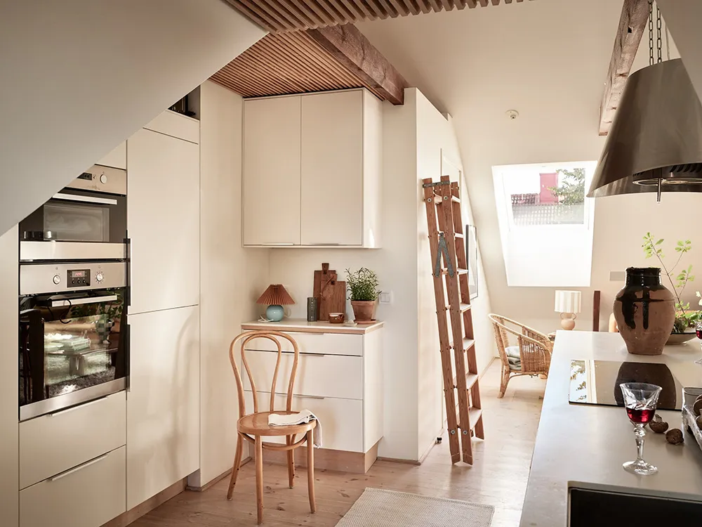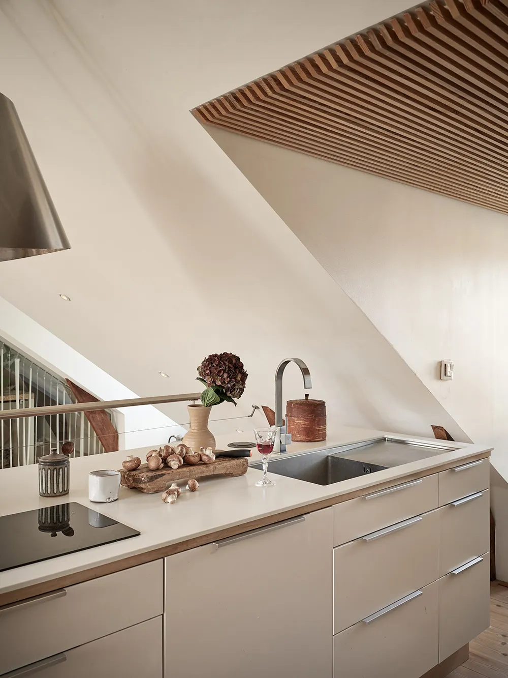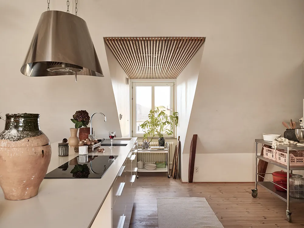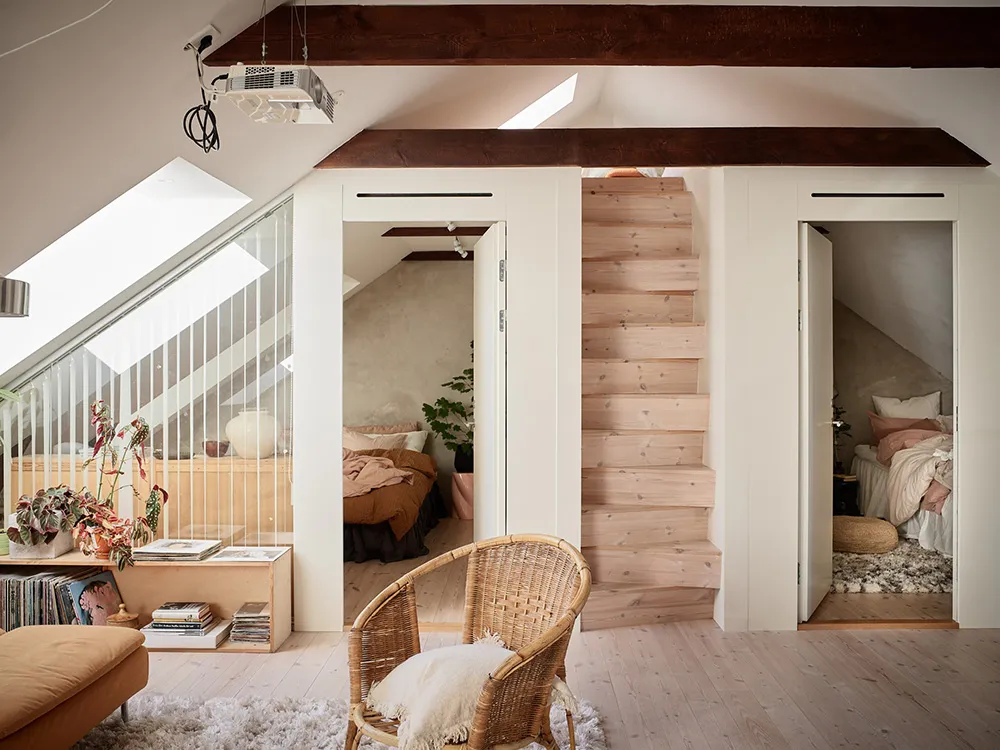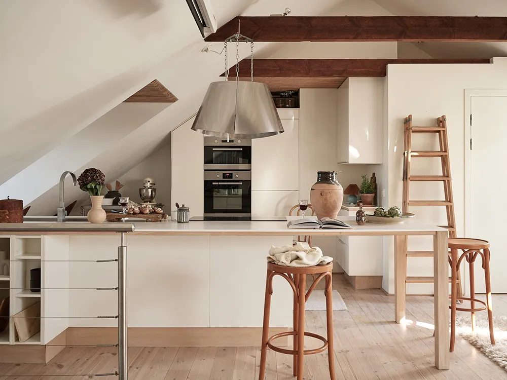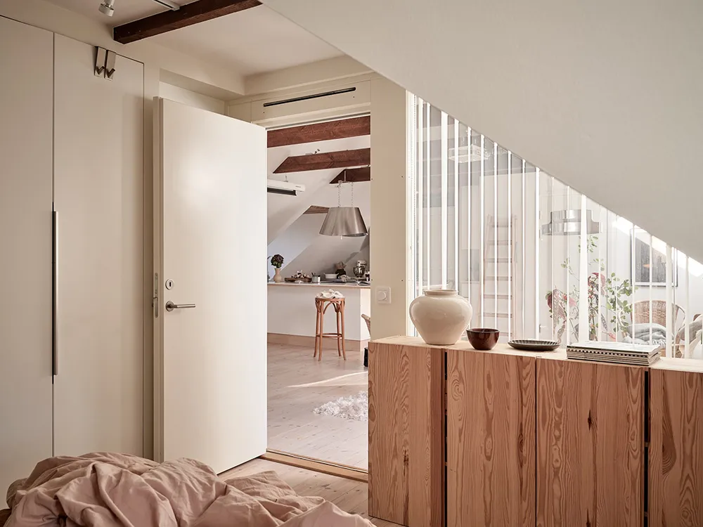 Несмотря на то, что эта шведская квартира представляет собой по сути чердак старого 100-летнего дома, в ней очень светло и просторно.