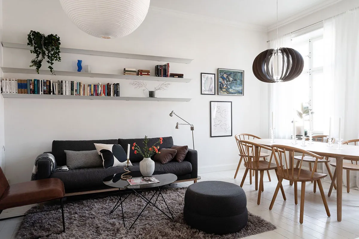 Уютный белый интерьер с лёгкими тёмными акцентами (57 кв. м)