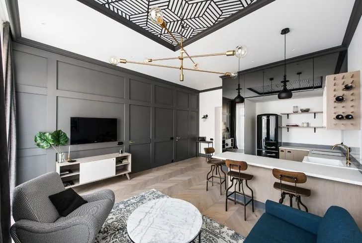 На нижнем этаже резиденции находятся технические помещения, выше расположены кухня, гостиная и обеденная зона. Верхний объём содержит спальни и игровую площадку для всей семьи. Дом также имеет ряд внешних зон, включая террасу у бассейна и открытую гостиную, где каждый вечер можно наблюдать потрясающий закат. В интерьере доминируют традиционные для данного региона материалы, такие как кожа, сталь, дерево.