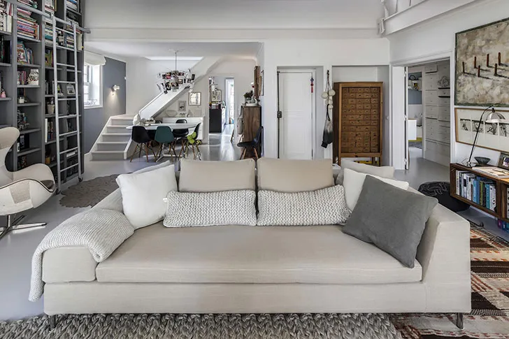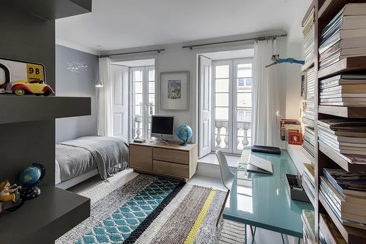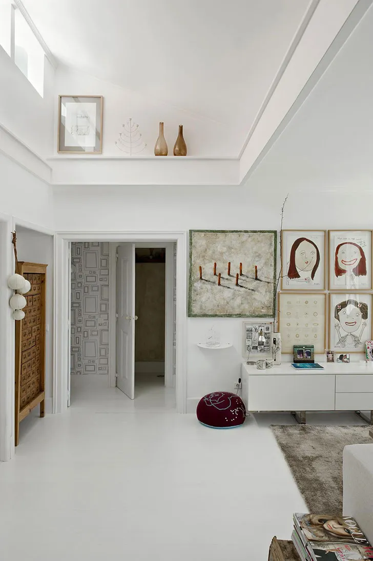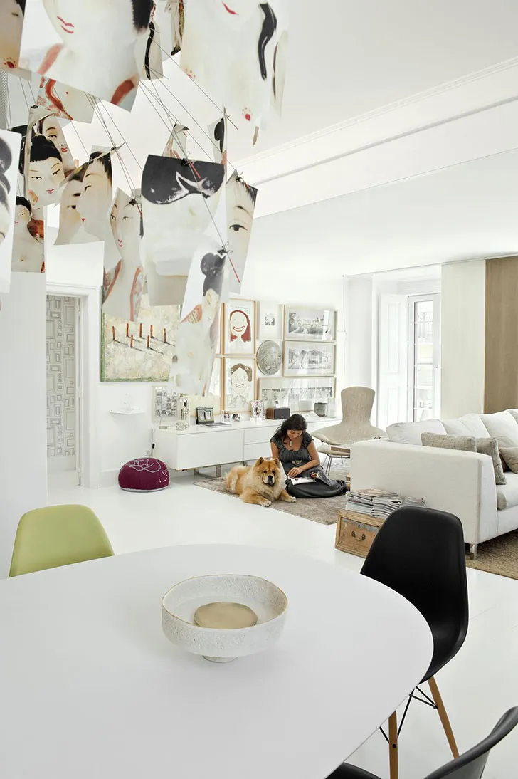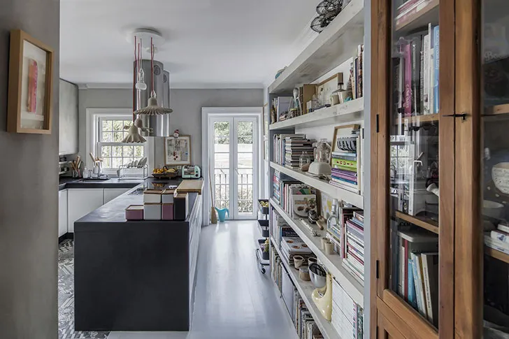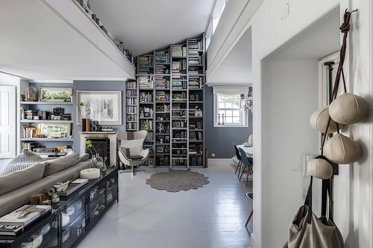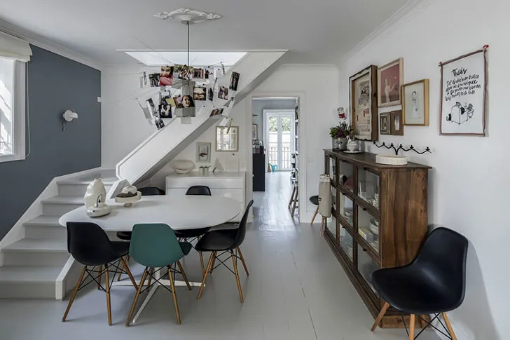Этот красивый дом находится в центре Лиссабона и принадлежит дизайнеру интерьера Ligia Casanova. Изначально интерьер строился на контрасте белого и песочного цветов, обеспечивая свежую и легкую атмосферу. Но спустя несколько лет дизайнер решила изменить цвет мебели и пола на светло-серый, и некоторые стены окрасить в темный цвет для контраста.