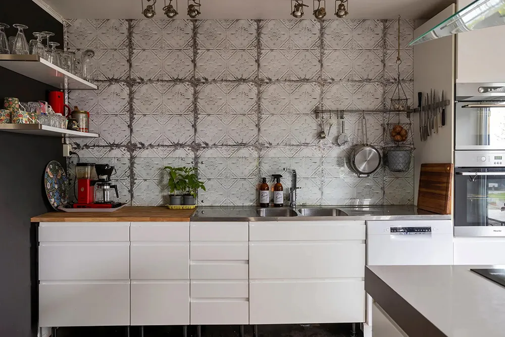 Приятные оттенки серого и кирпичная стена на кухне: квартира в Гётеборге