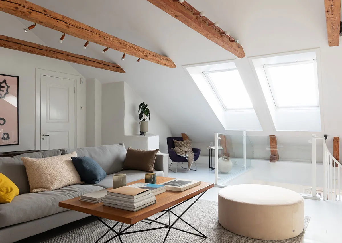Яркая квартира с мансардой и балконом в Стокгольме (87 + 13 кв. м)