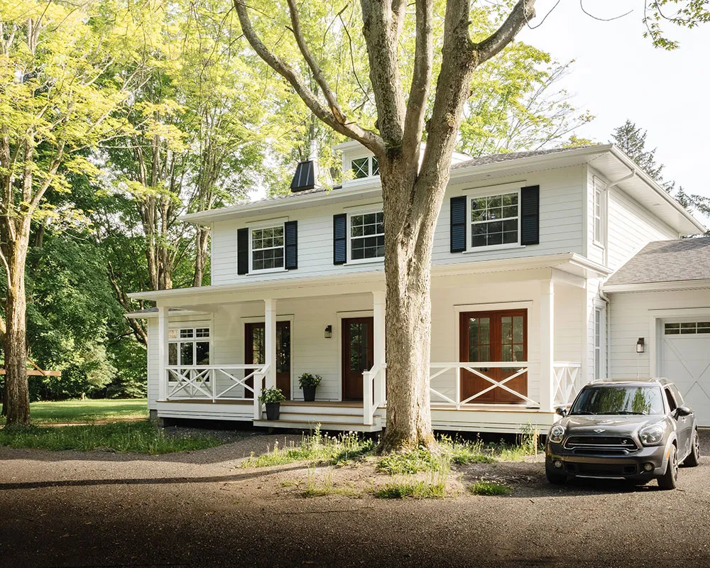 Дизайн этого замечательного дома с белоснежным экстерьером в Канаде построен на противопоставлении светлых и тёмных оттенков, но стоит отметить, что эти контрасты выглядят довольно мягко и приятно.
