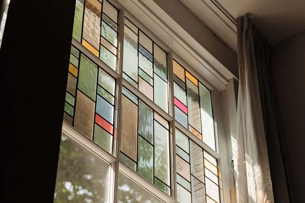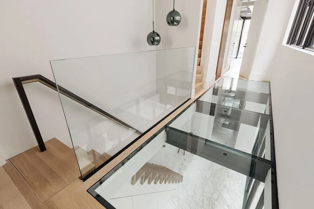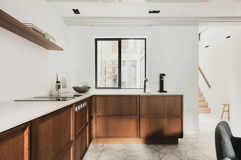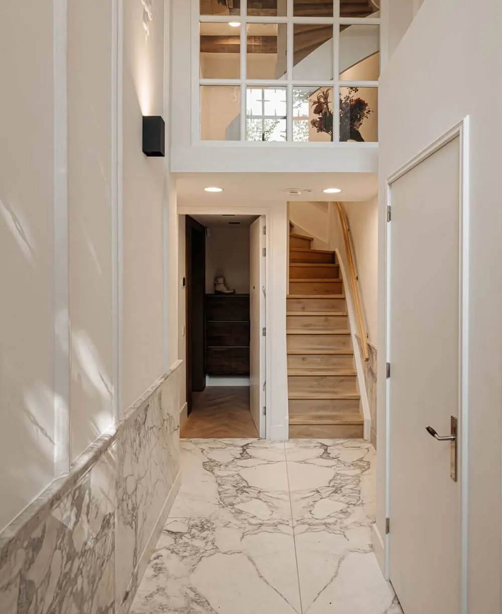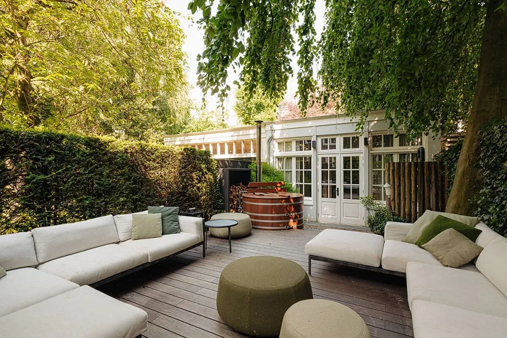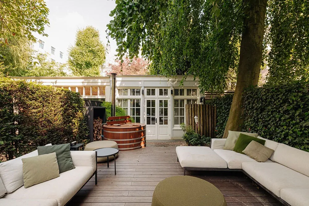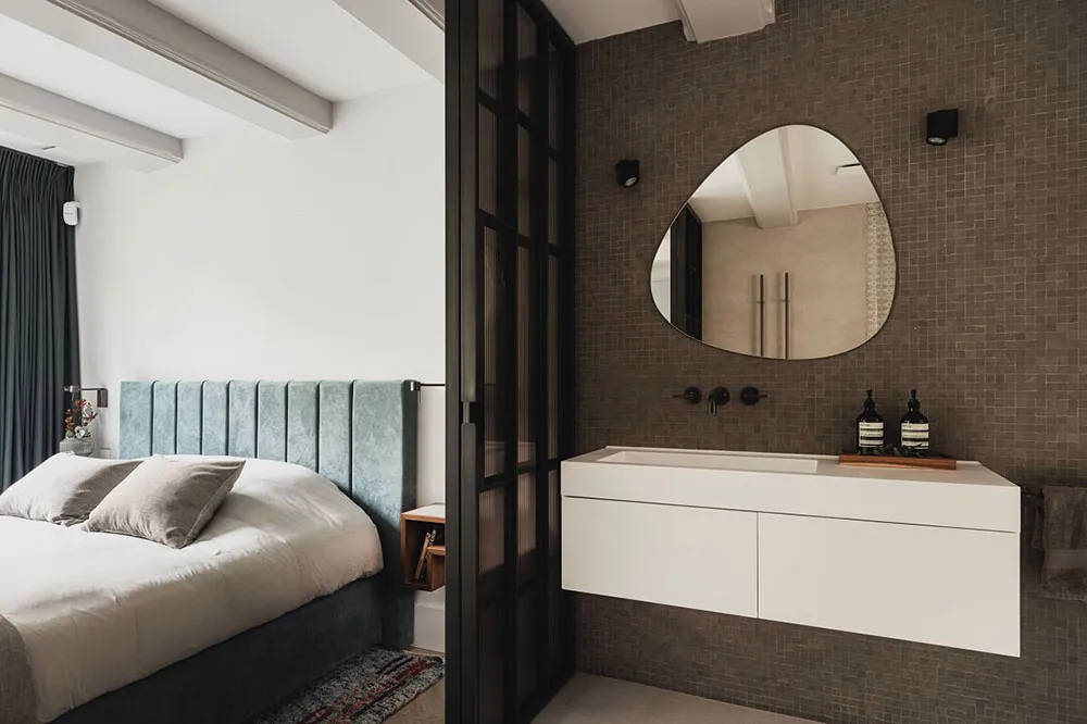 Современный дизайн дома на канале в Амстердаме со вторым светом и камином