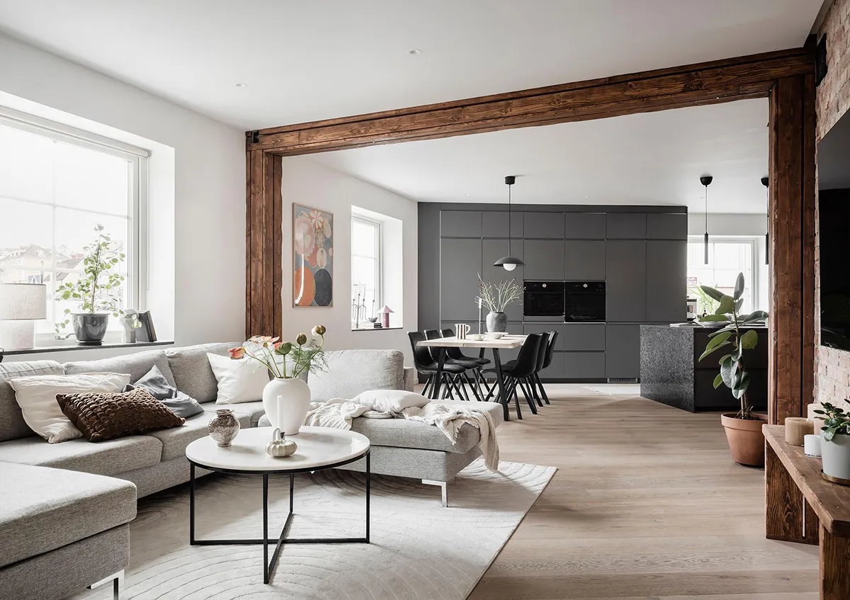 Кирпичные стены и кухня для вечеринок: необычная квартира в Швеции