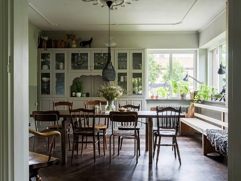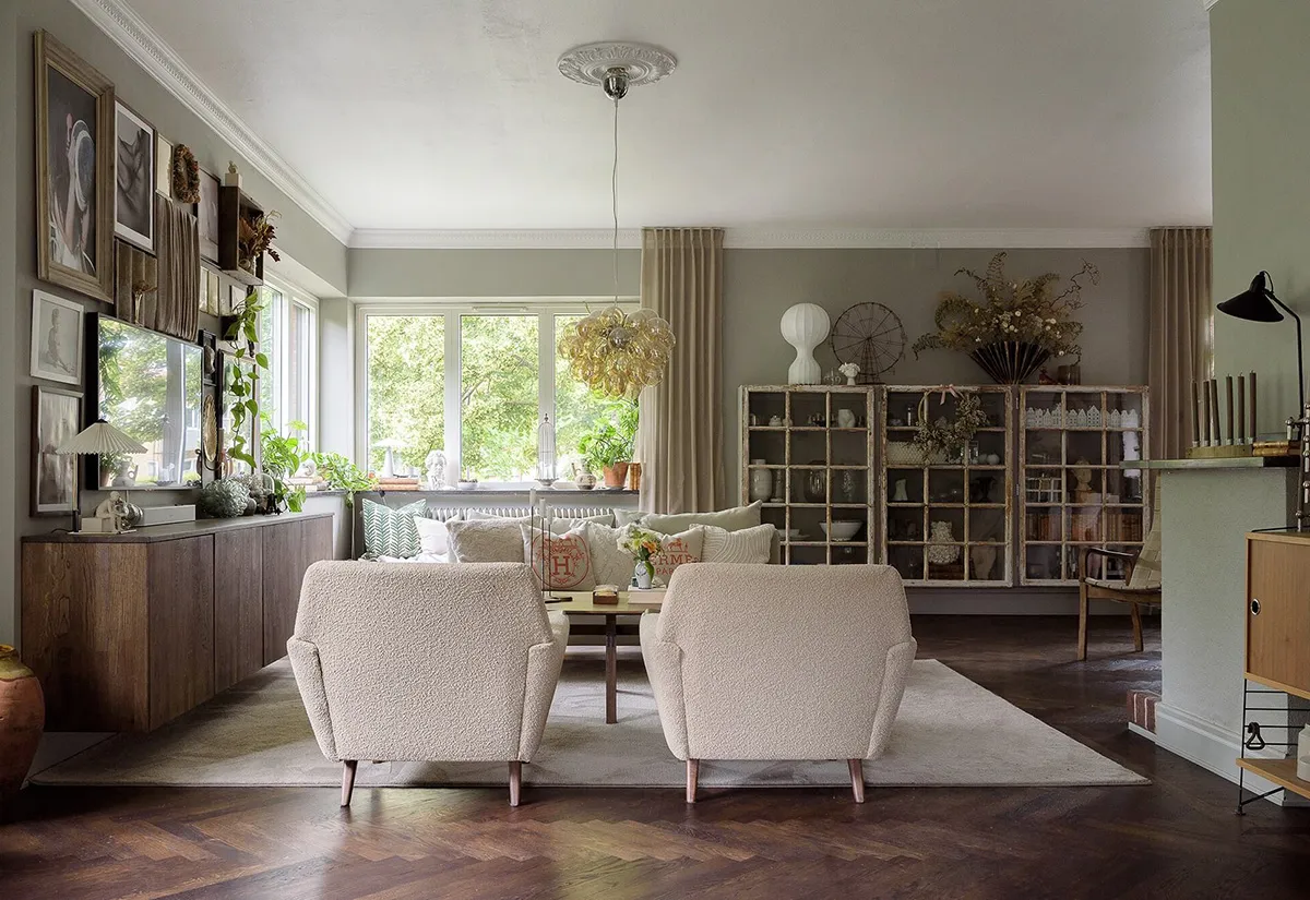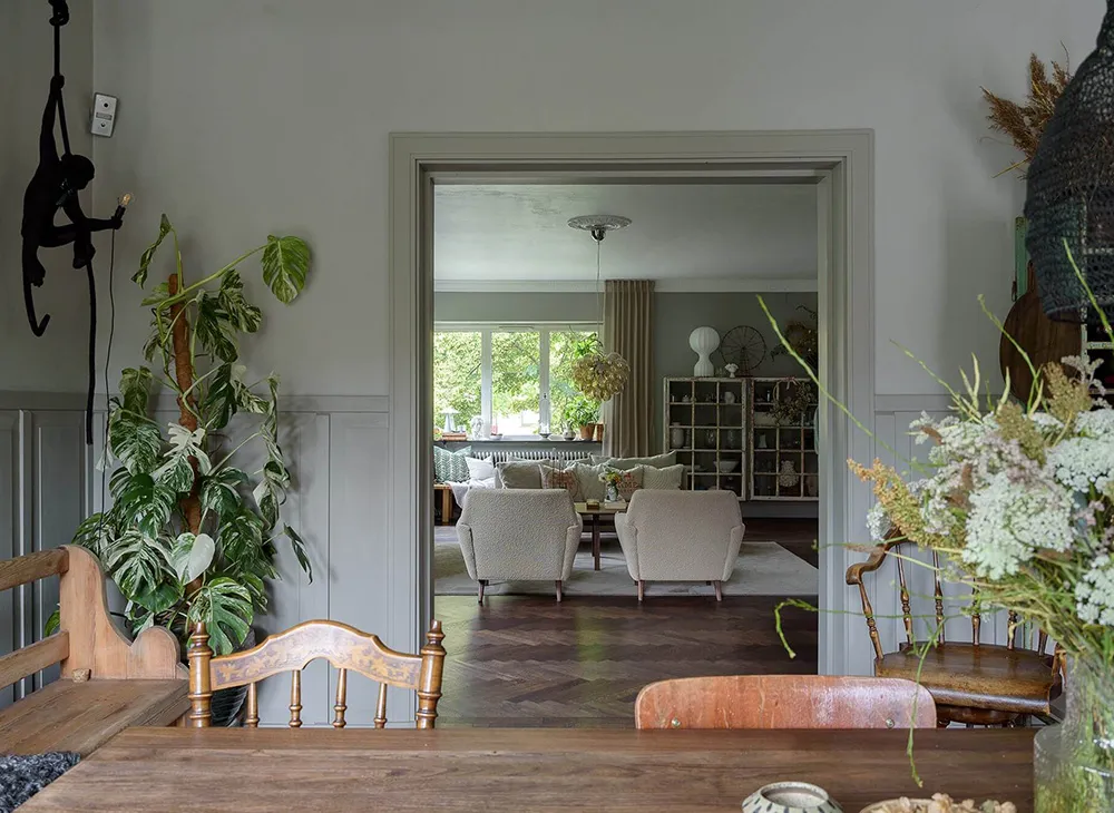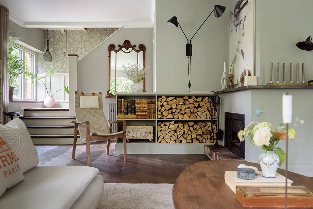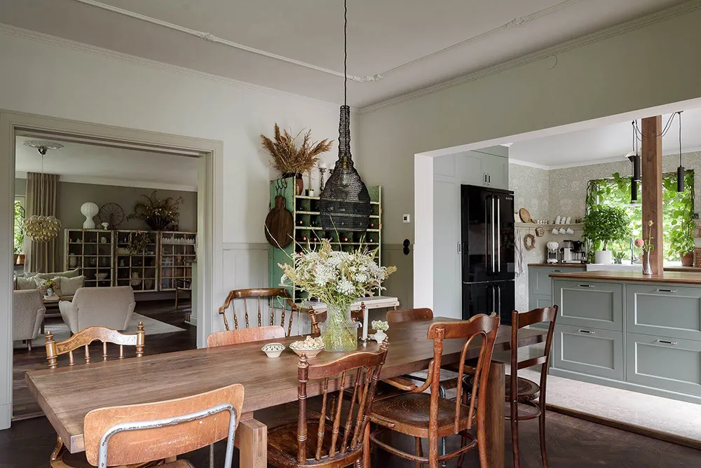 Оттенки зелёного и бежевого в дизайн уютного деревенского коттеджа в Швеции