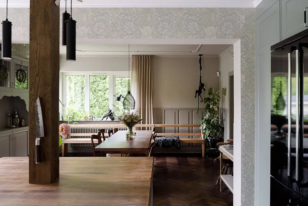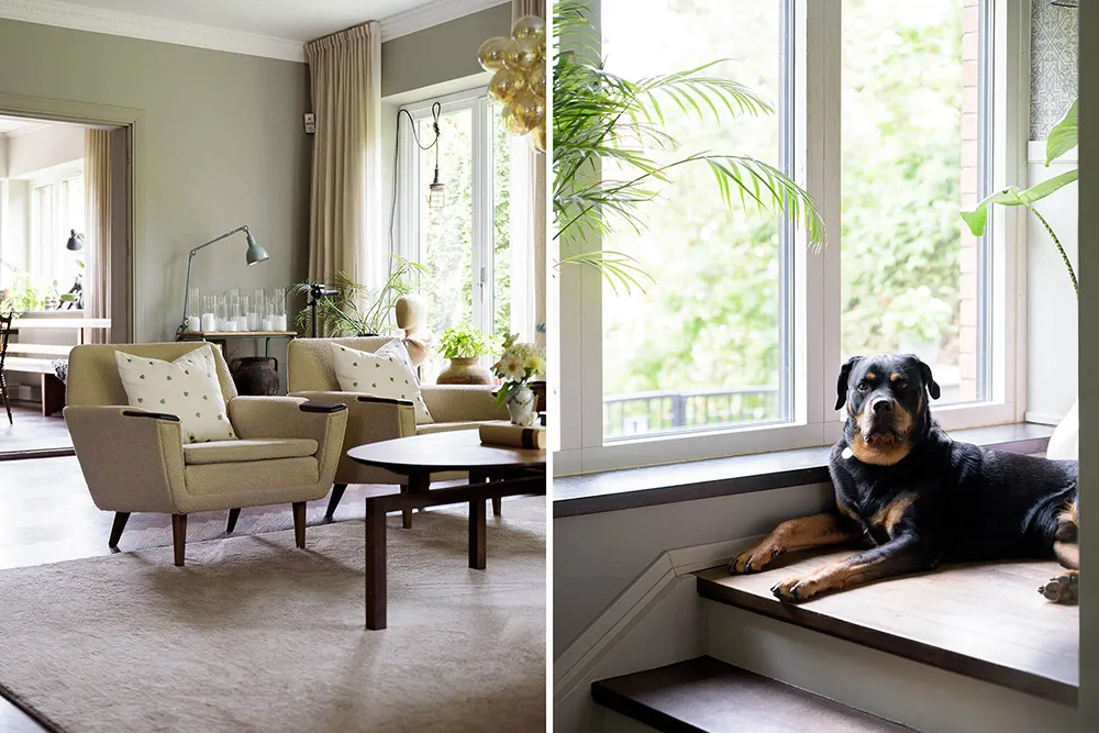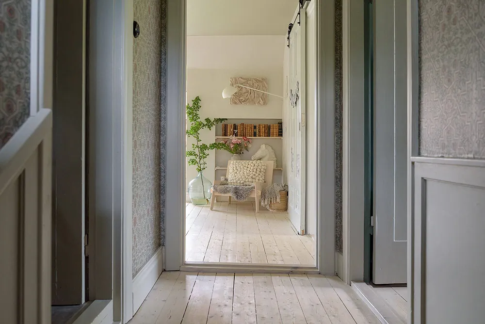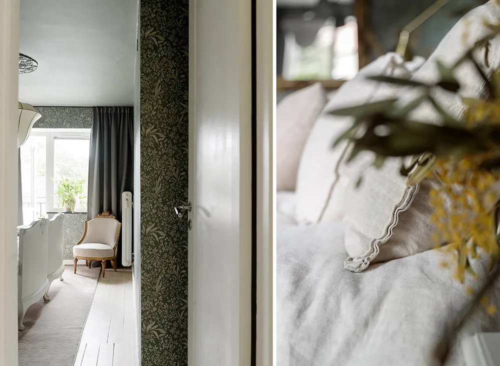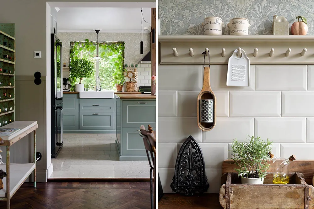 Оттенки зелёного и бежевого в дизайн уютного деревенского коттеджа в Швеции