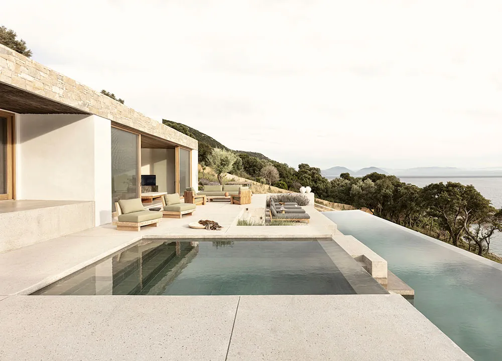 Вилла Аполлон — не только пример высококлассного современного дизайна дома на побережье, но также и образец практически идеальной интеграции архитектуры в окружающую среду.