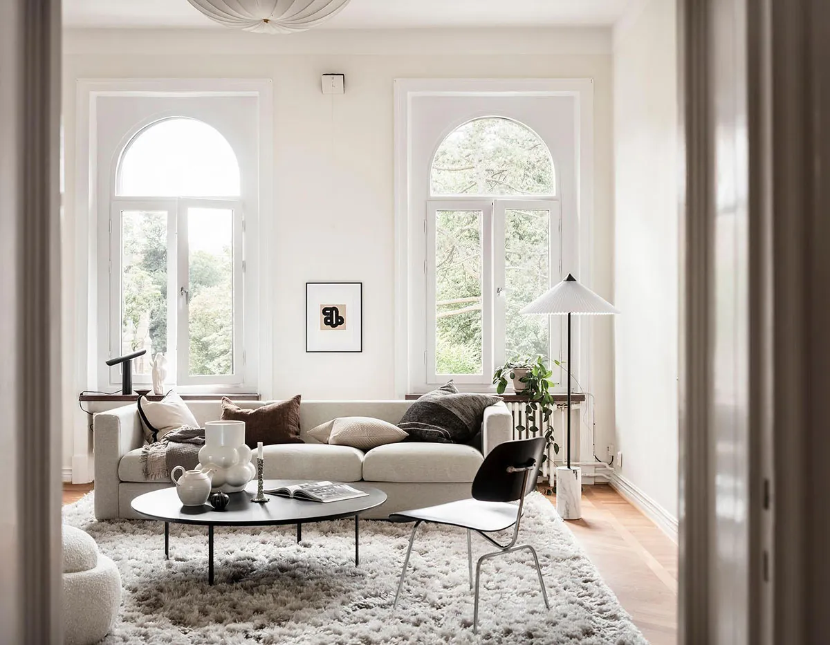 Светлый и элегантный интерьер с арочными окнами в Гётеборге (83 кв. м)