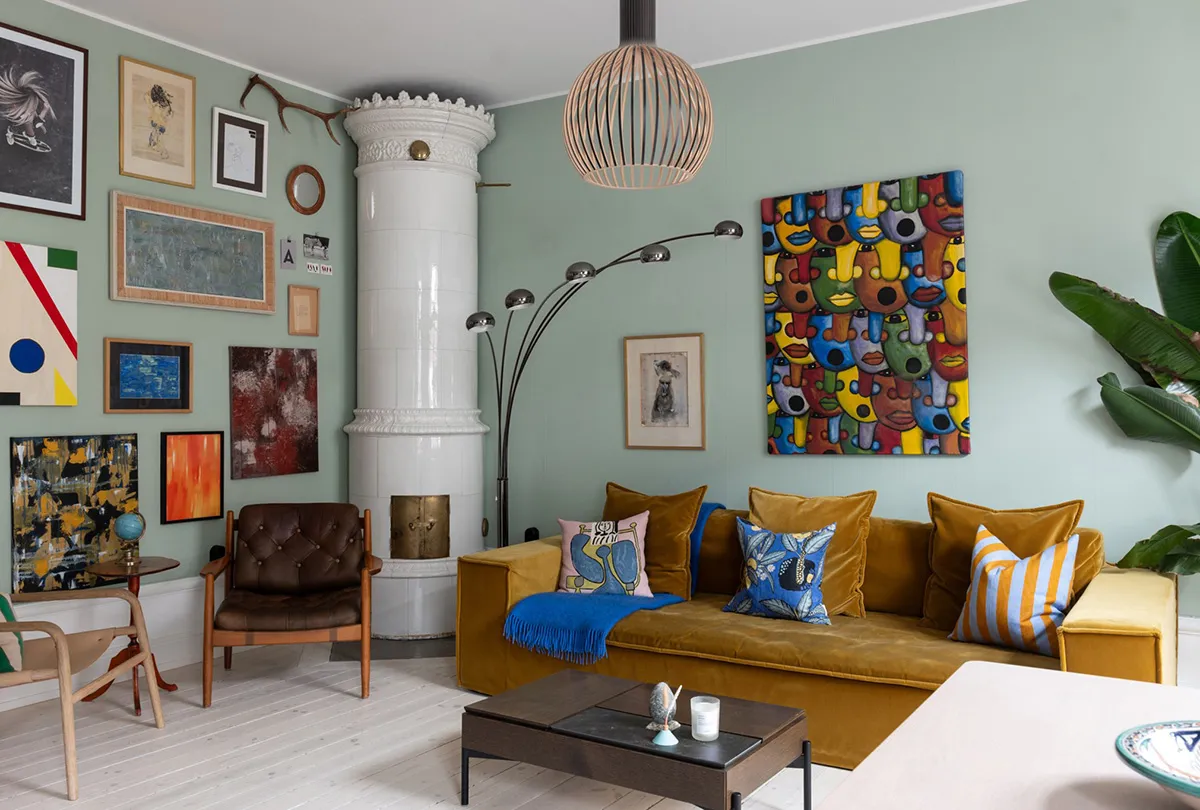 Голубые стены и современное искусство: красочная квартира в Стокгольме (54 кв. м)