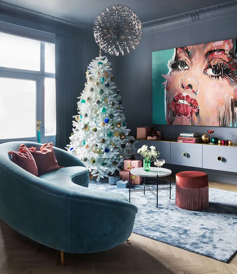 Рождественский декор для гламурного интерьера в стиле ар-деко в Швеции