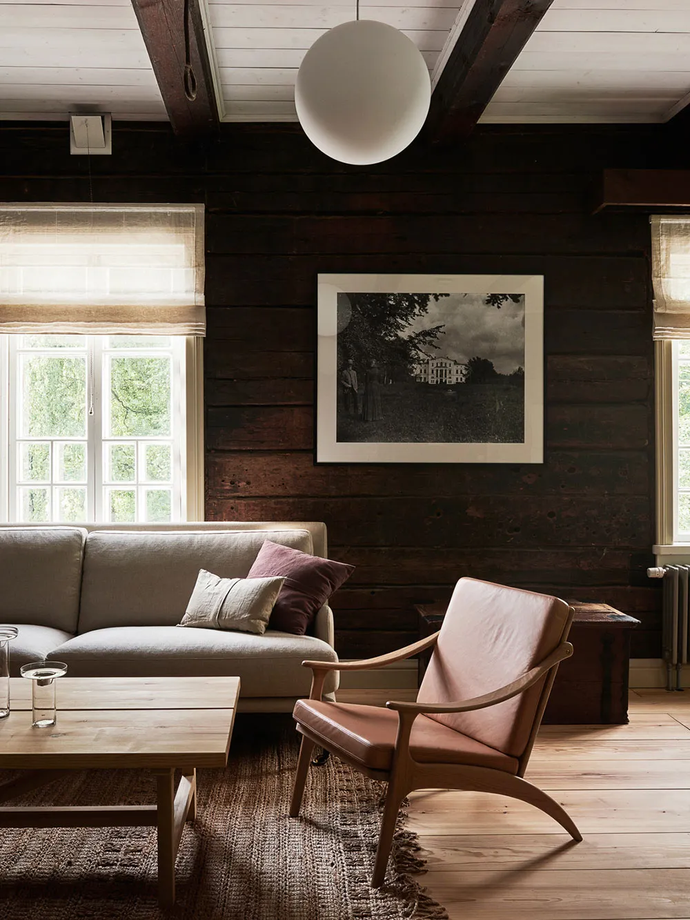 Скандинавский уют на фоне тёмного дерева в Финляндии