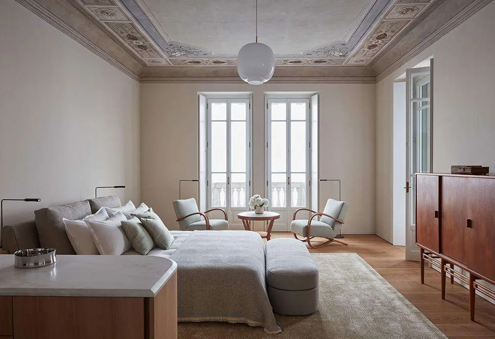 Изысканный современный интерьер в молочных оттенках в Париже