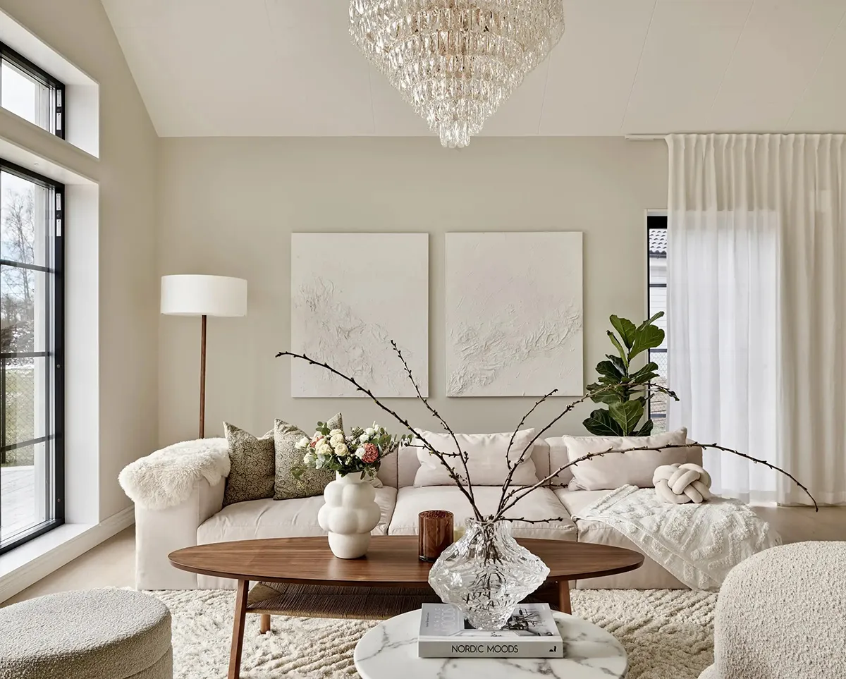 Бежевые стены, яркий декор и тёмная спальня: квартира в Гетеборге (68 кв. м)