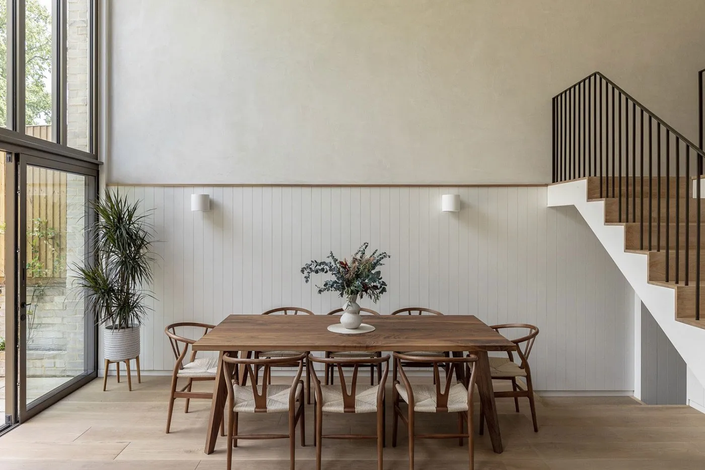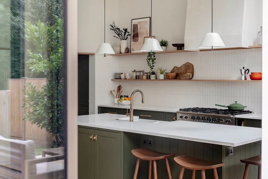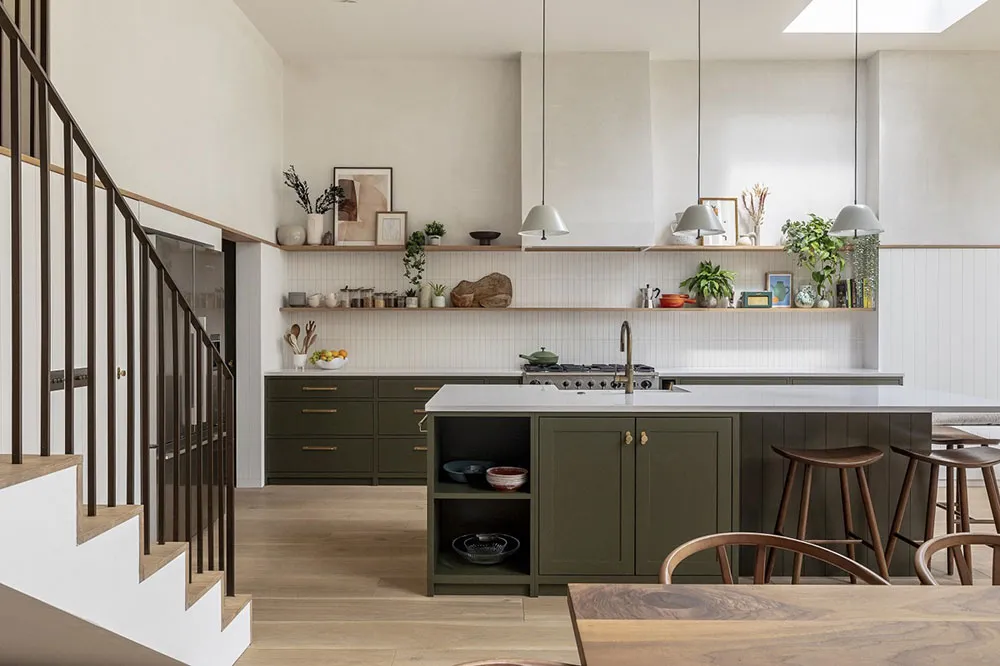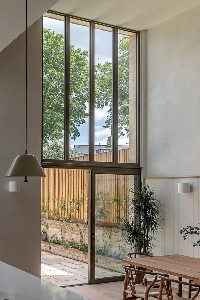 Самым эффектным пространством в этом лондонском таунхаусе стала светлая и открытая кухня с обеденной, которая расположилась в современной пристройке на заднем дворе.