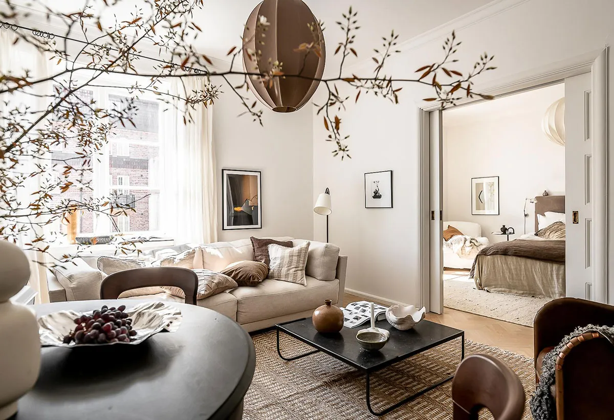 Светлый скандинавский интерьер с тёплыми винтажными нотками (78 кв. м)