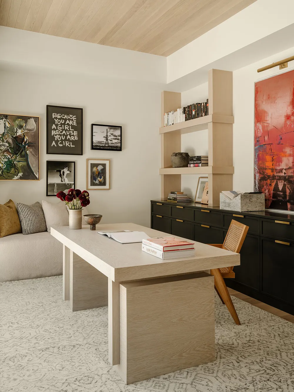 Белая квартира в Париже с ярким декором и зелёной кухней