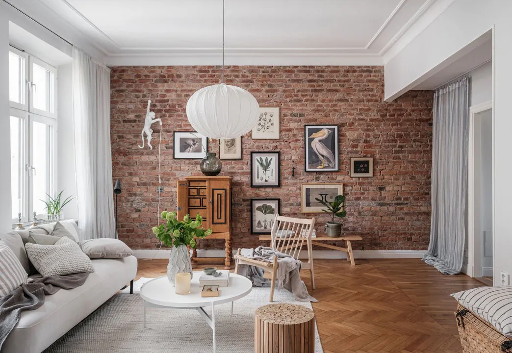 Кирпичная стена как главный акцент в дизайне квартиры в Швеции