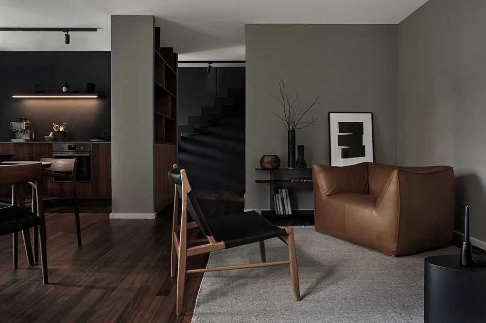 Тёмные оттенки и строгая эстетика в дизайне дома в Мюнхене