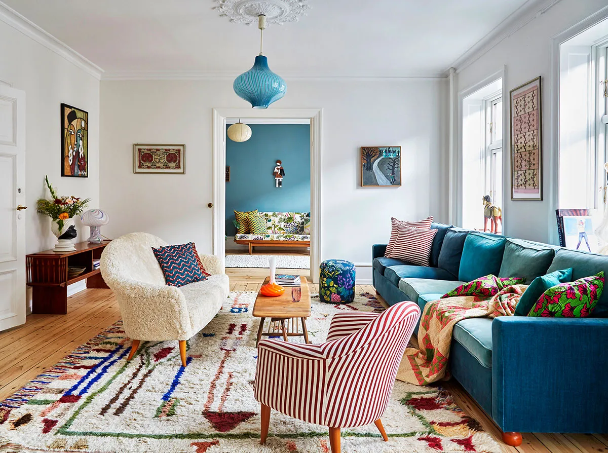 Стильная кухня и голубая печь: красивый интерьер в Гётеборге (91 кв. м)