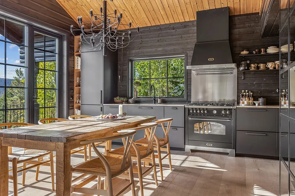 Шведское шале со стильными контрастными интерьерами и большими окнами