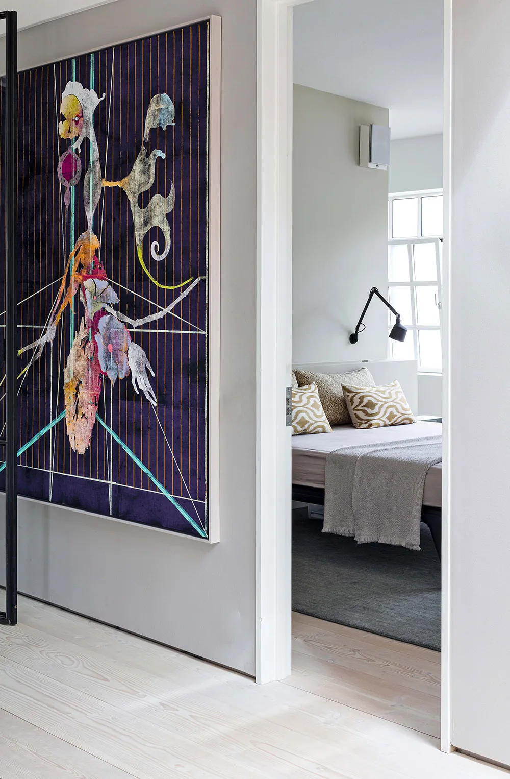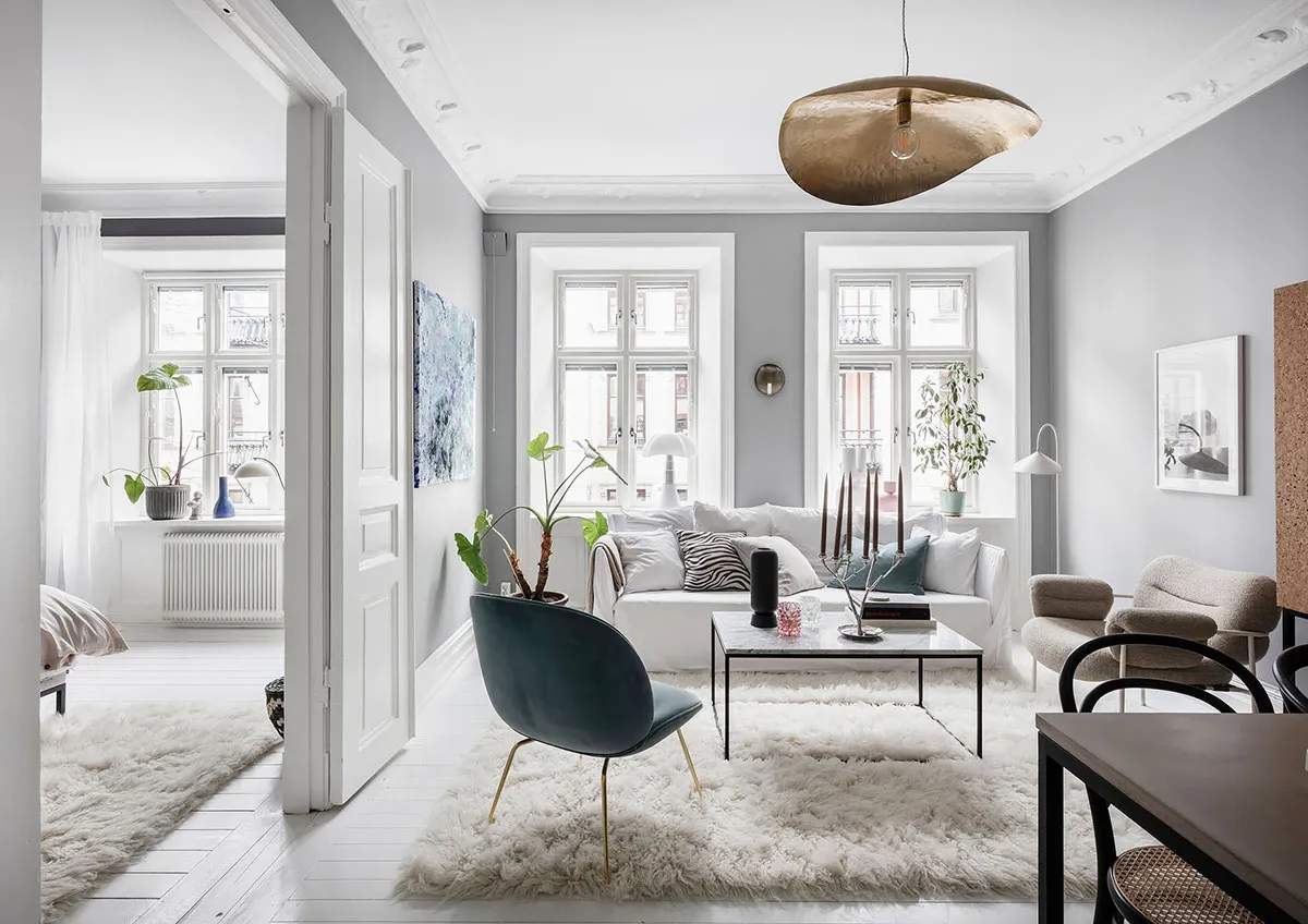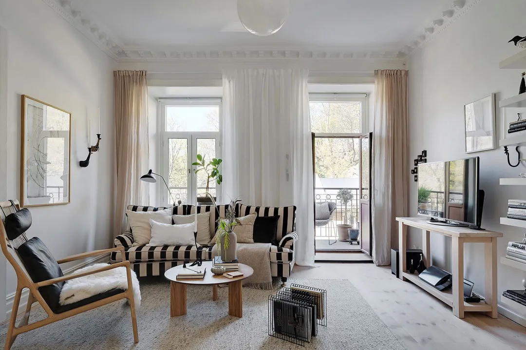 Скандинавская квартира с полосатым диваном
