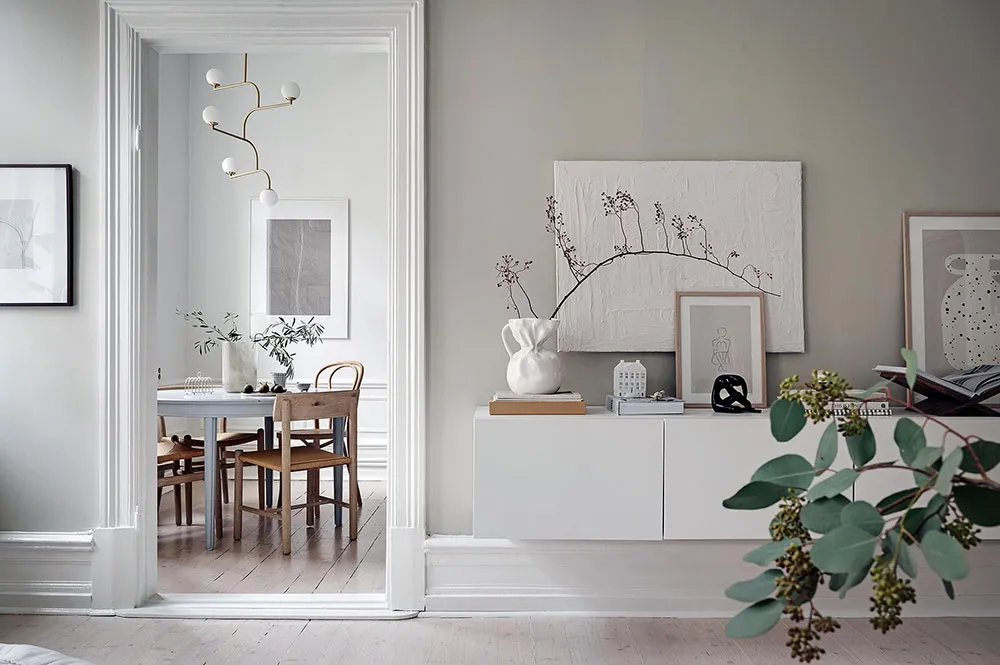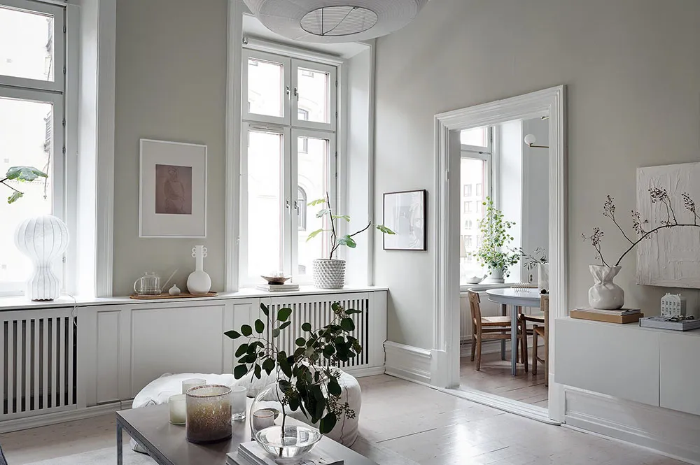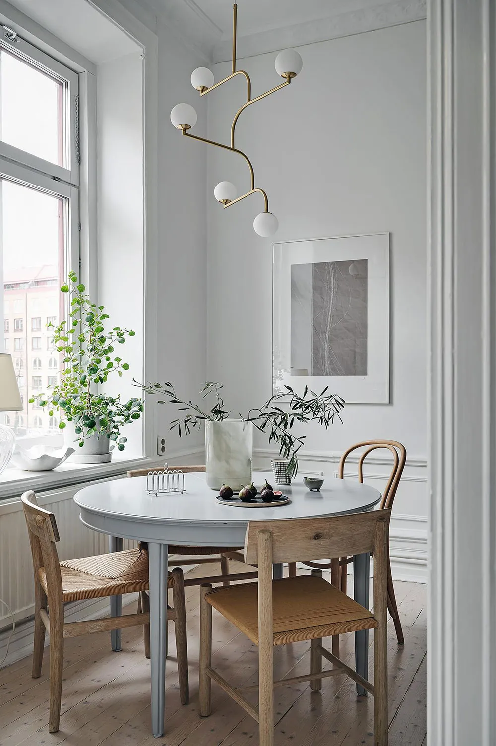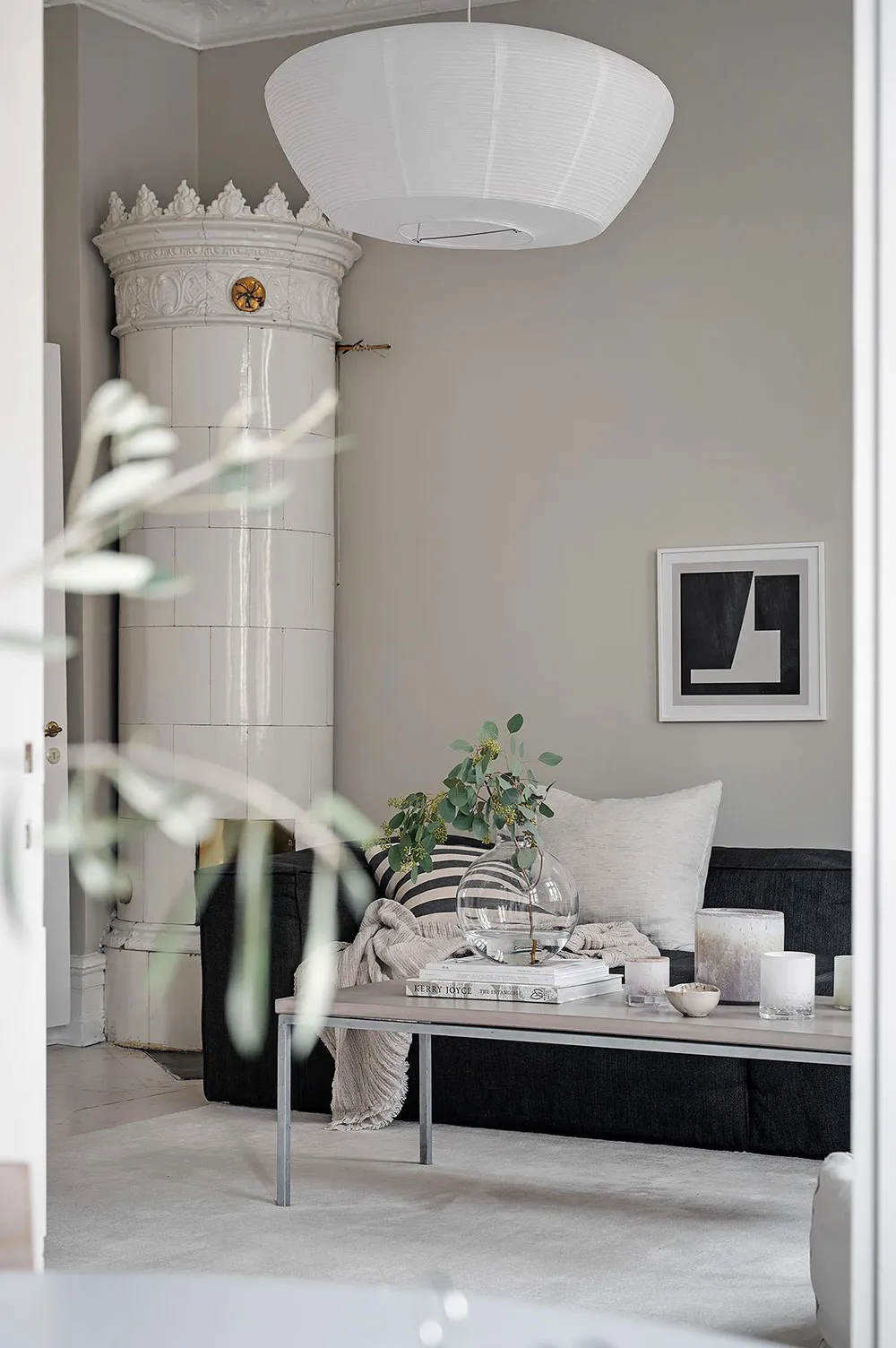 Этот шведский интерьер выглядит очень приятно в своей светлой цветовой гамме и со стильными деталями.