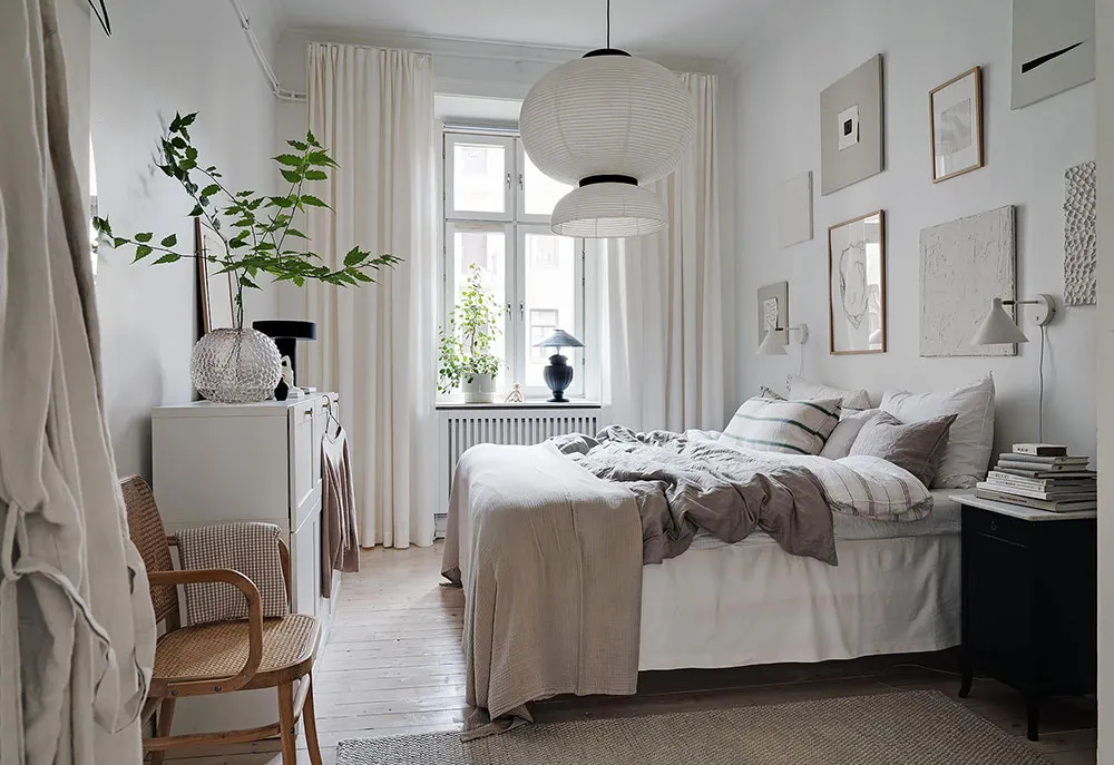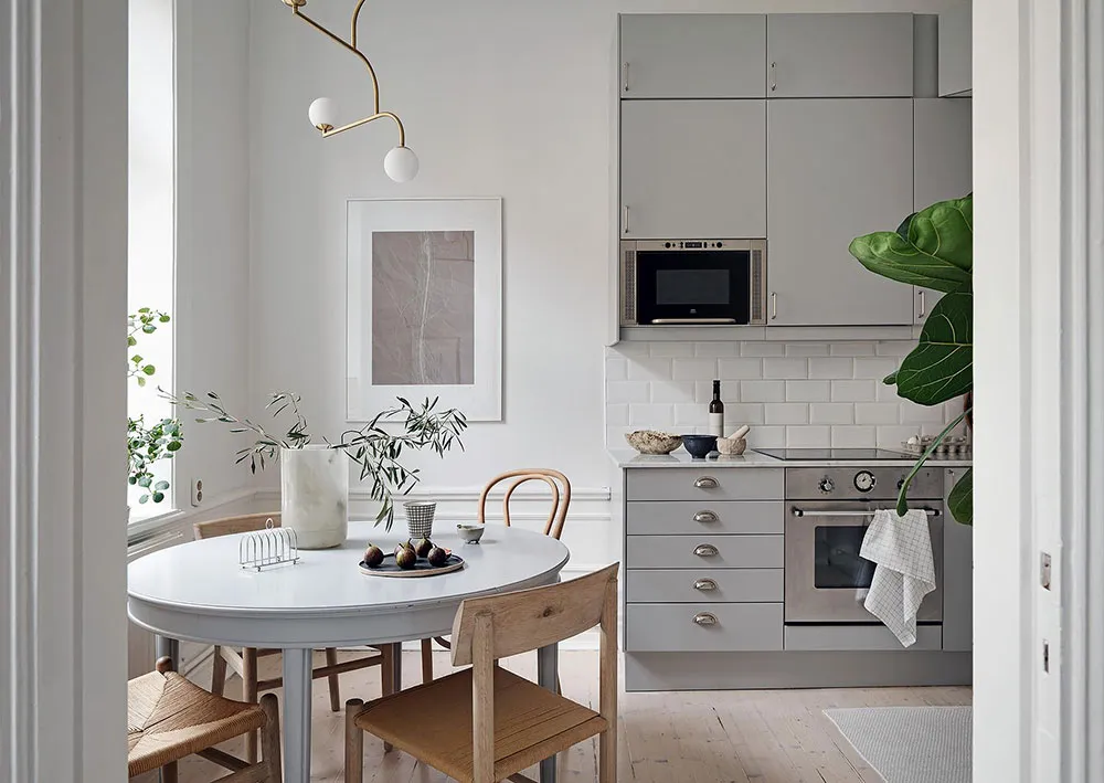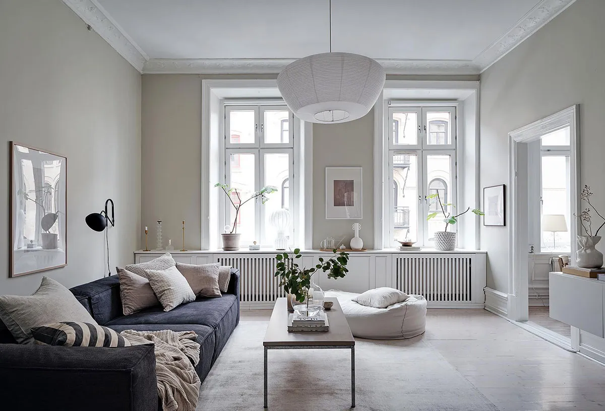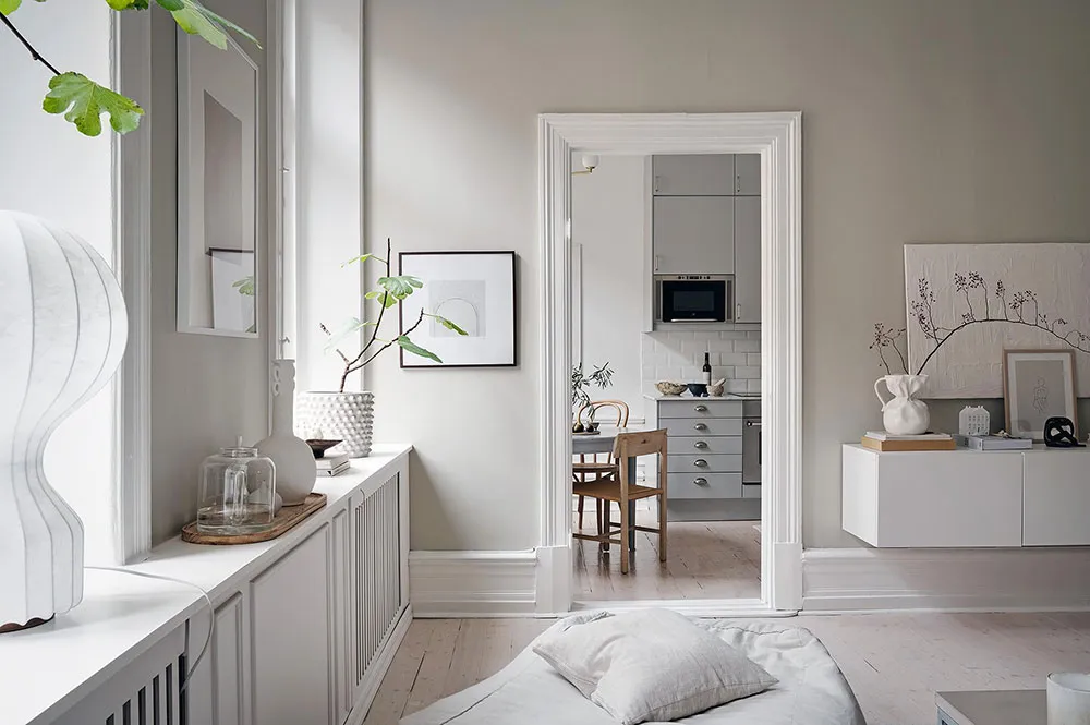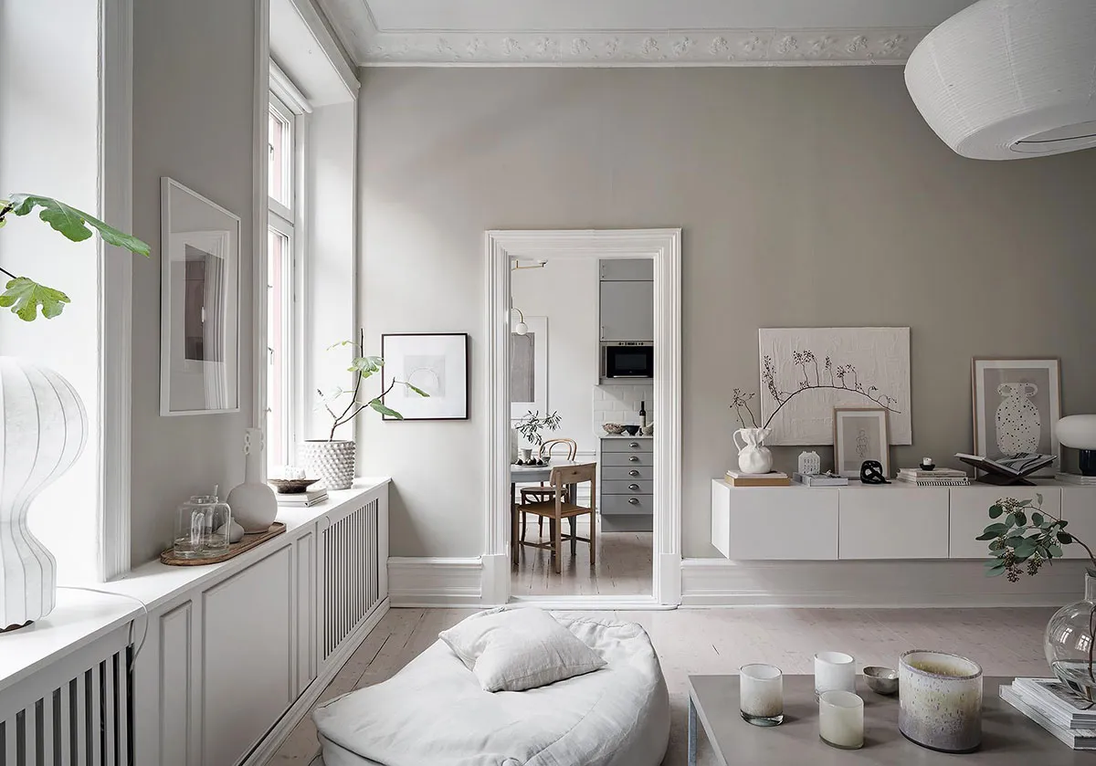 Этот шведский интерьер выглядит очень приятно в своей светлой цветовой гамме и со стильными деталями.