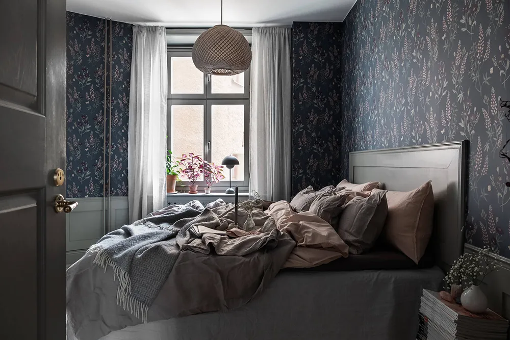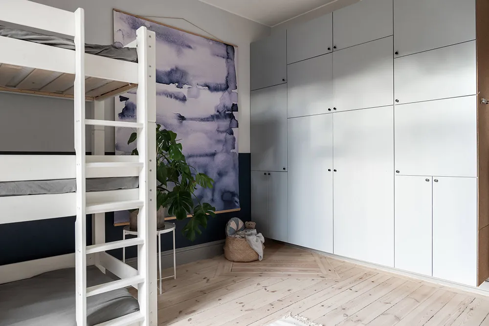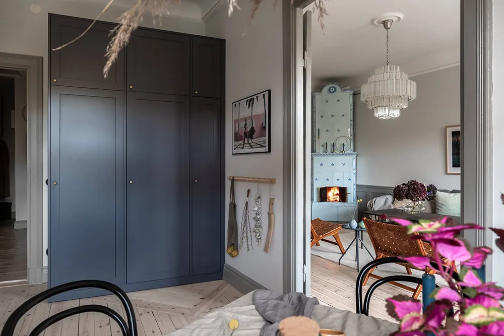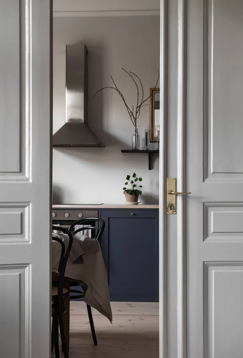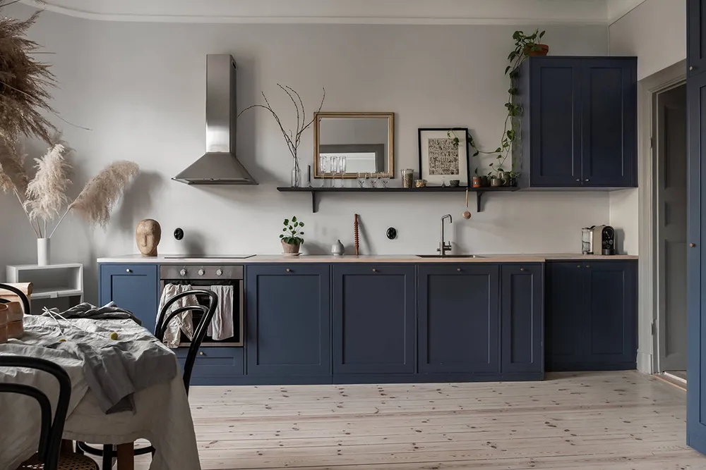 Великолепный глубокий синий в дизайне необычной шведской квартиры (57 кв. м)