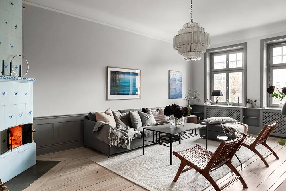 Нейтральная гамма и старинная печь: квартира в Стокгольме