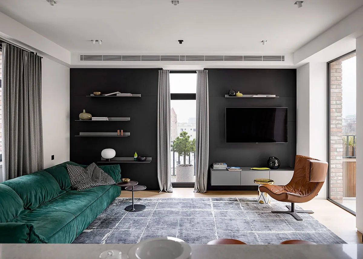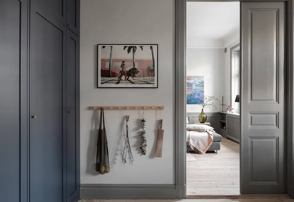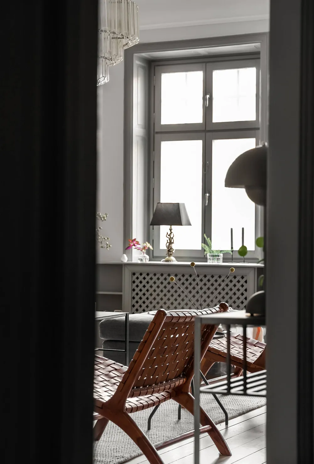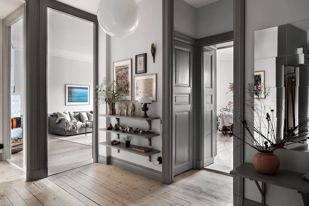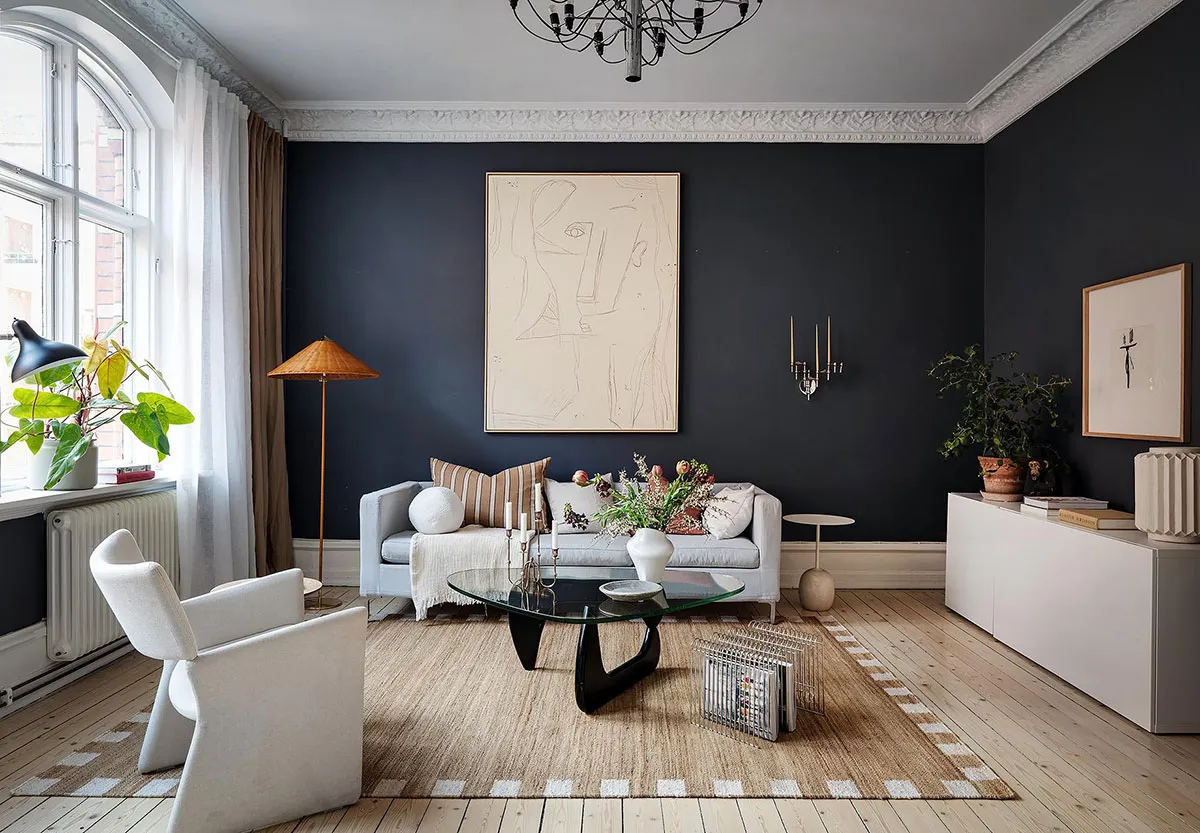 Хотя цветовая гамма этой шведской квартиры состоит из нейтральных оттенков, дизайнеры постарались сделать интерьер интересным с помощью тёмных контрастов и акцентов.