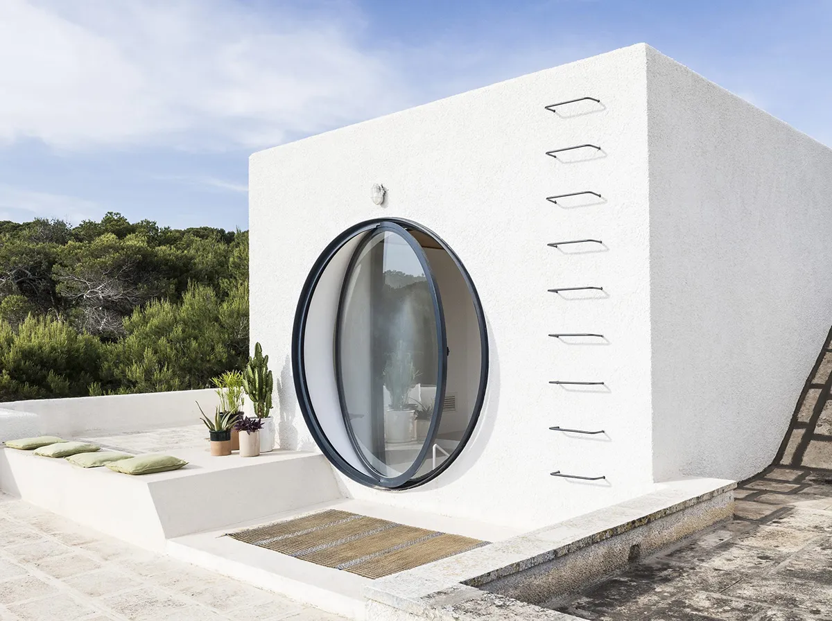 Маленький дом с большим глазом и лестницей в небо на юге Италии