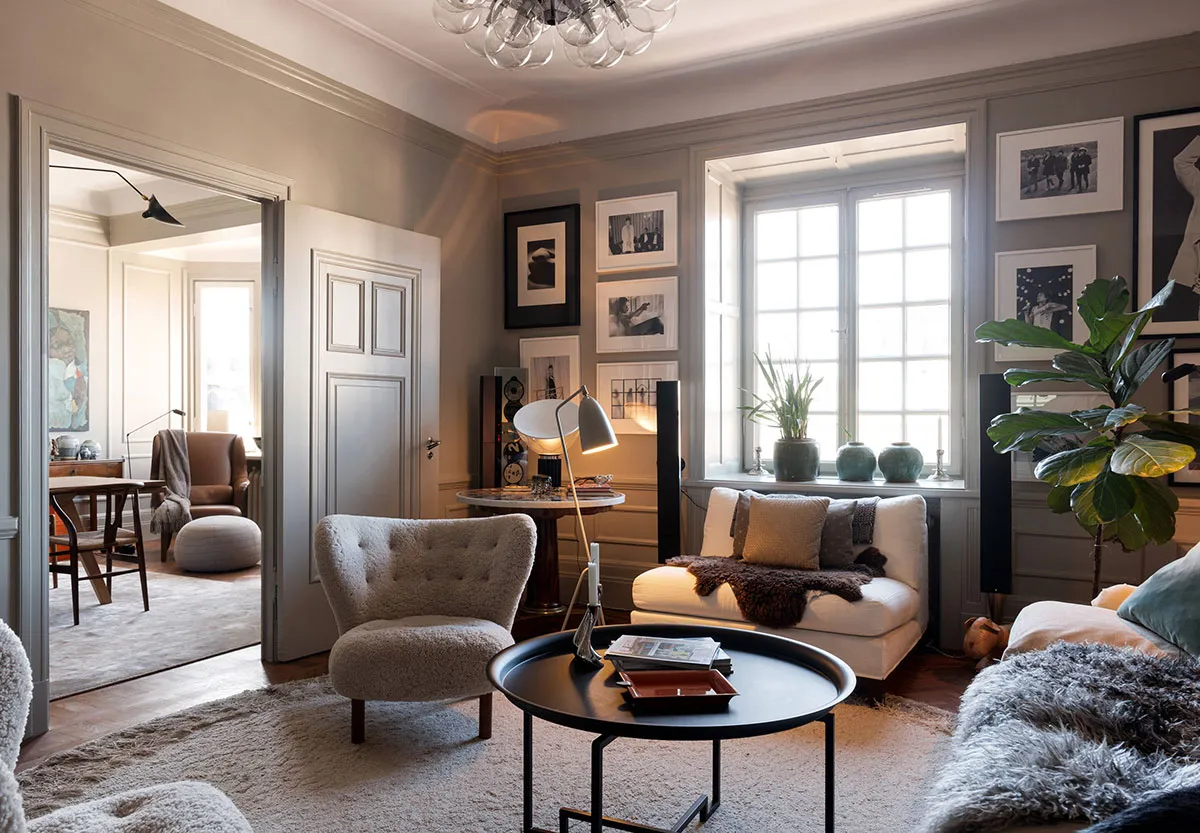 Уютный скандинавский интерьер с обилием предметов декора (101 кв. м)