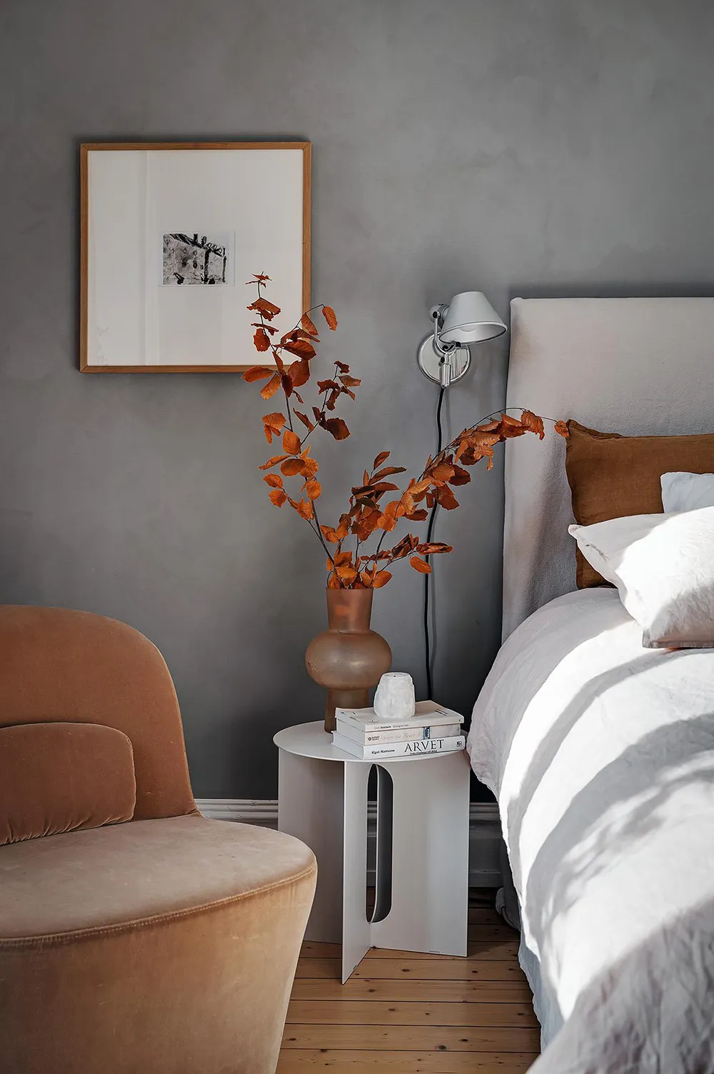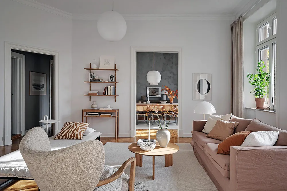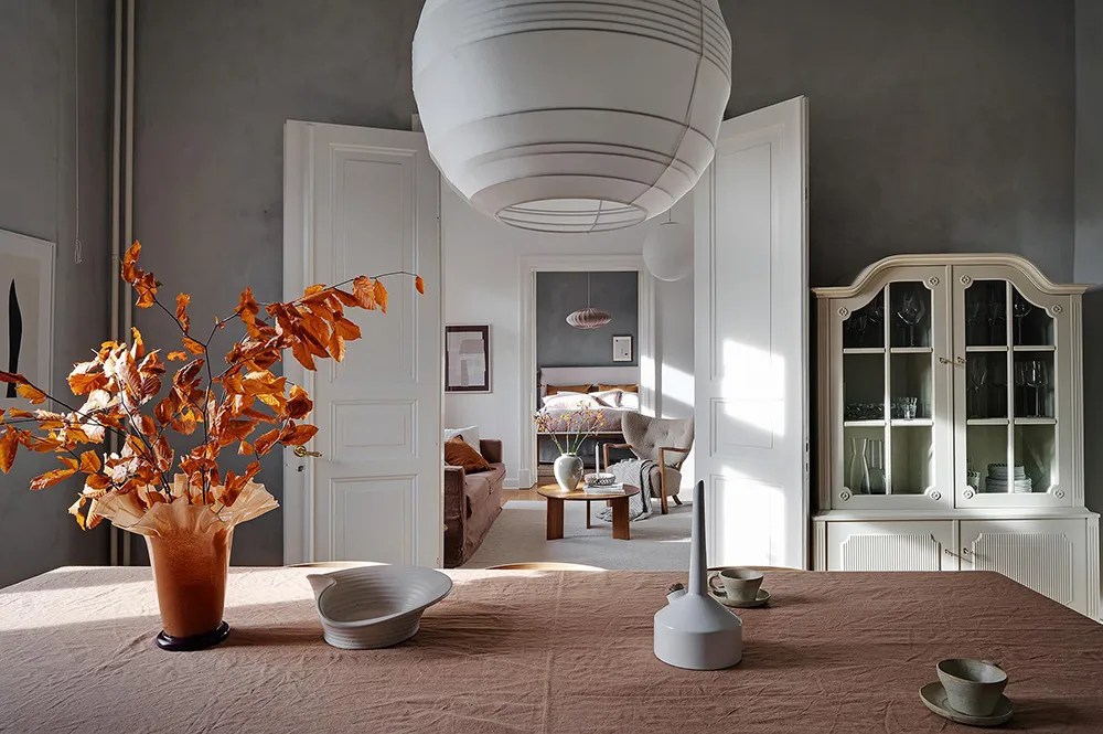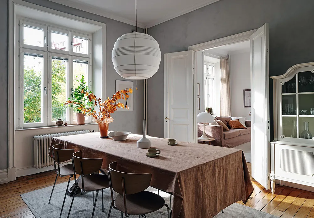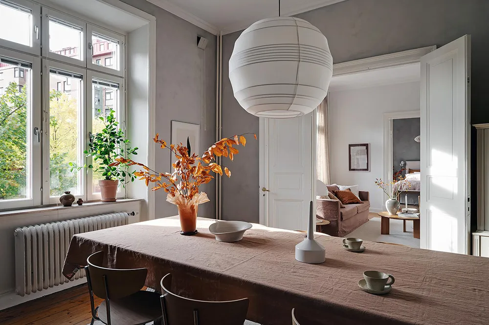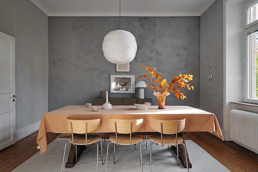 Темная штукатурка как атмосферный акцент к осеннему интерьеру: квартира в Швеции