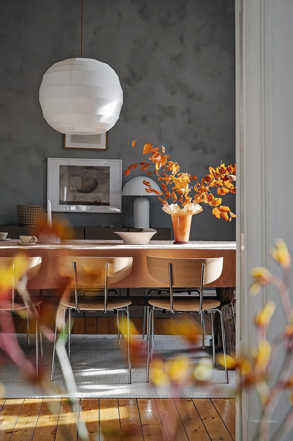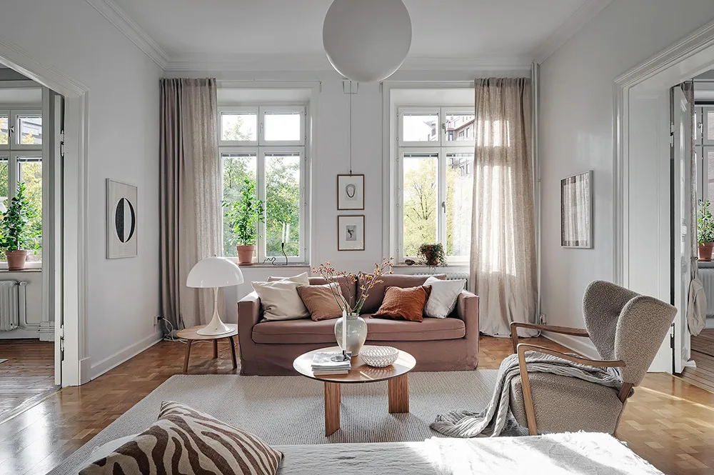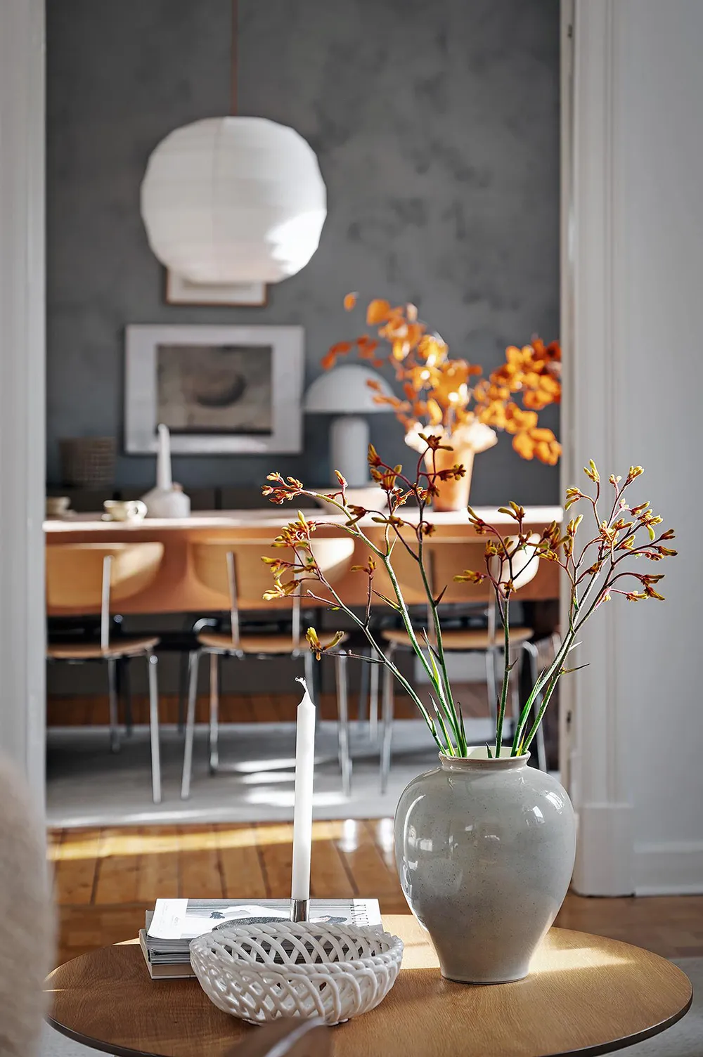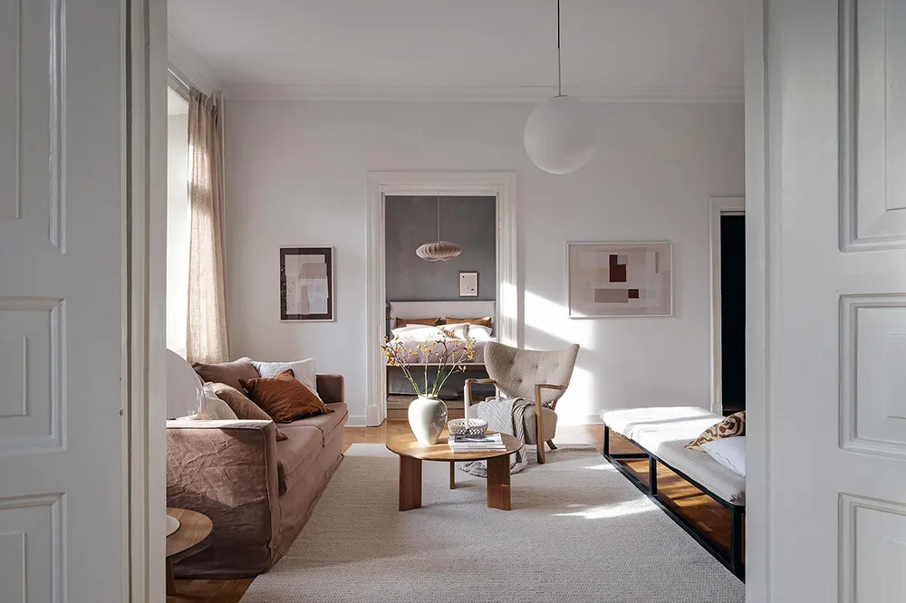 Темная штукатурка как атмосферный акцент к осеннему интерьеру: квартира в Швеции