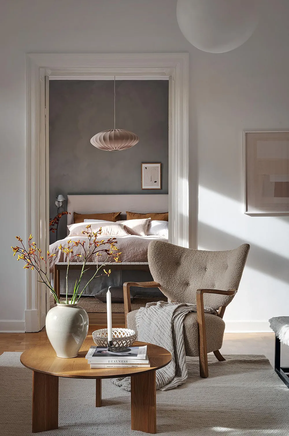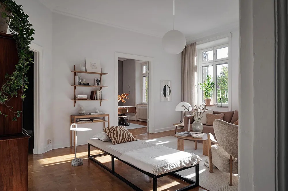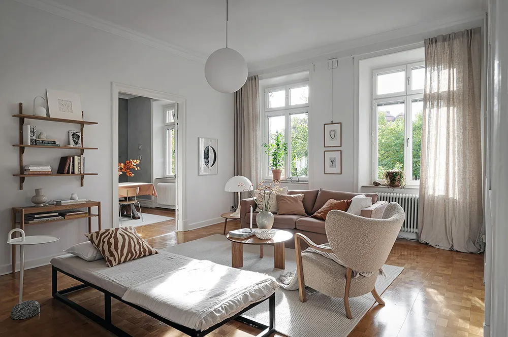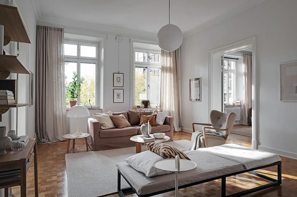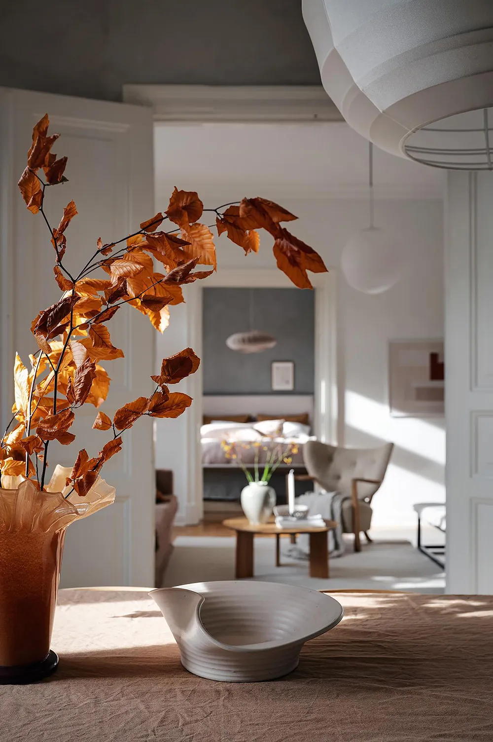 Темная штукатурка как атмосферный акцент к осеннему интерьеру: квартира в Швеции