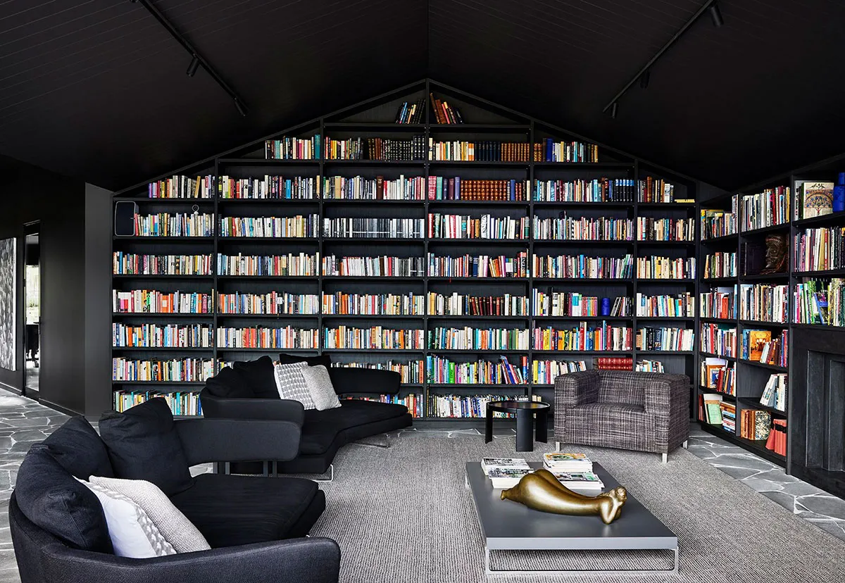 Черные стены и большая библиотека: стильный дом в Мельбурне