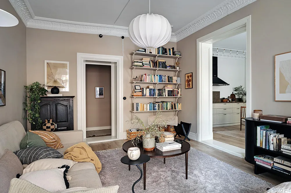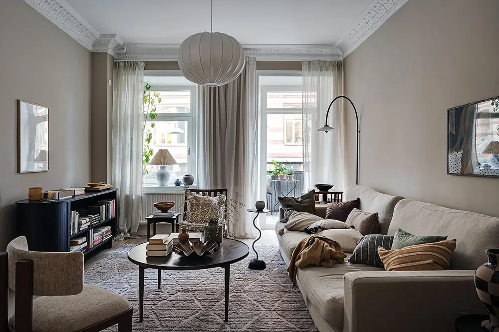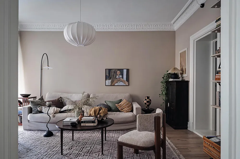 Оттенки бежевого в приятном интерьере шведской квартиры