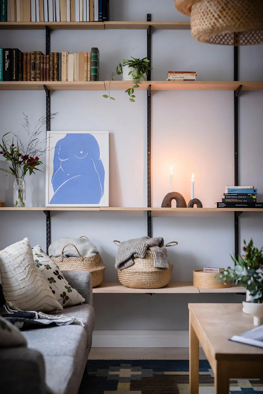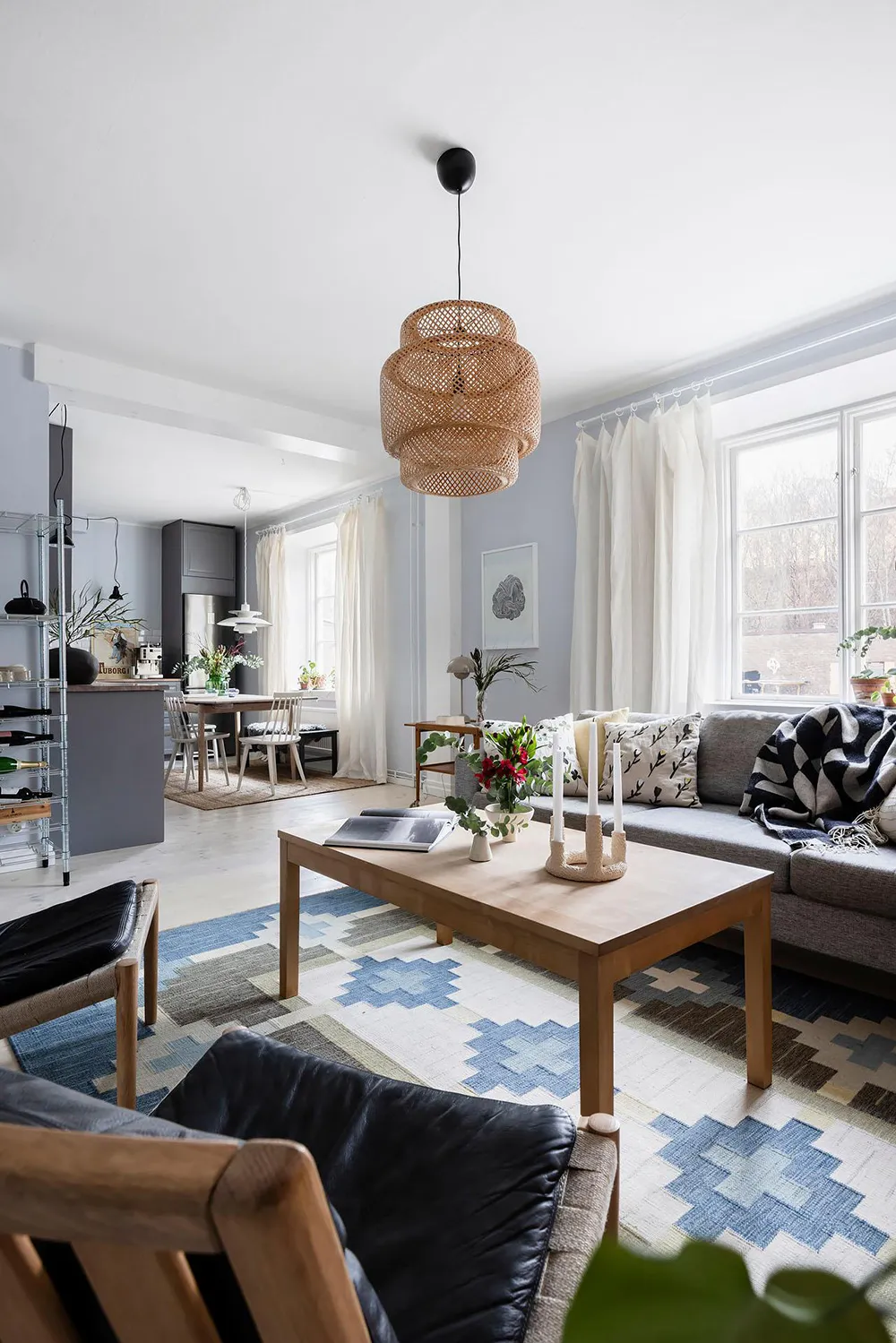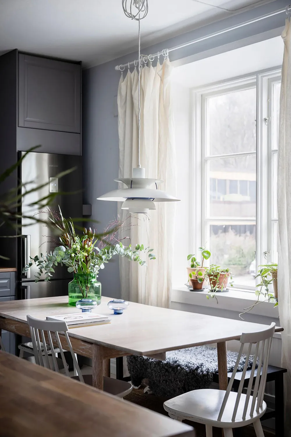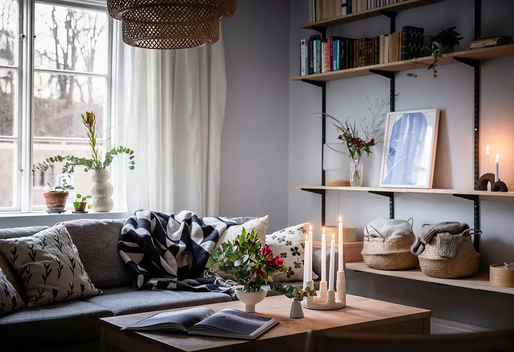 Контраст прохладной основы и теплых деталей наполнил эту шведскую квартиру приятной атмосферой с морозными зимними нотками.