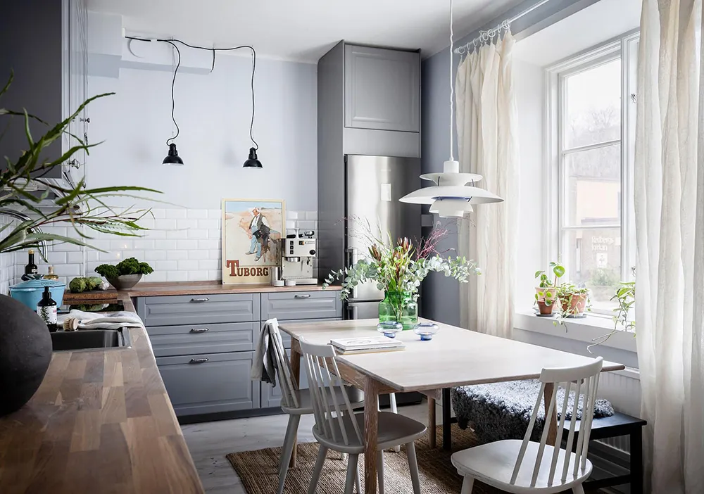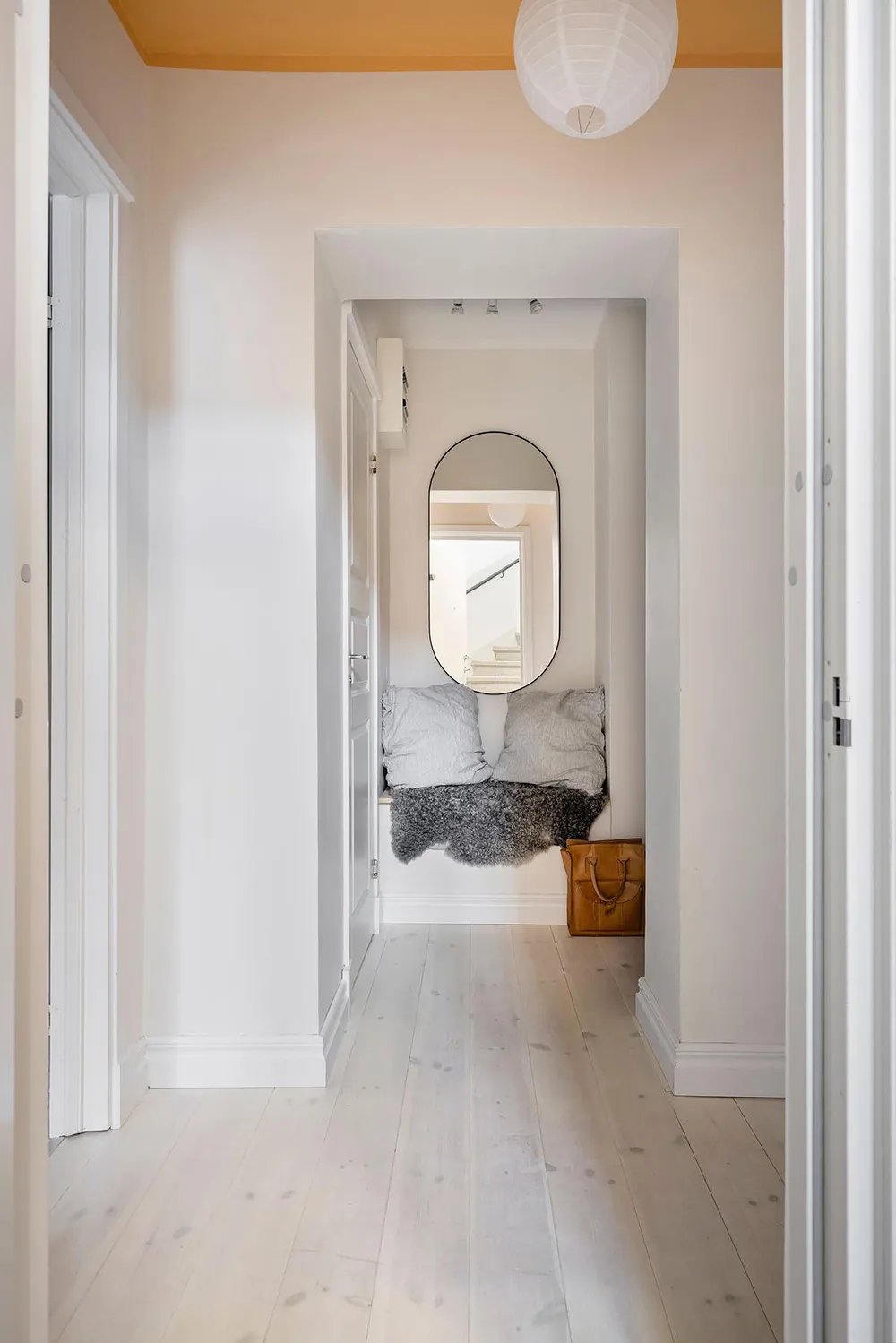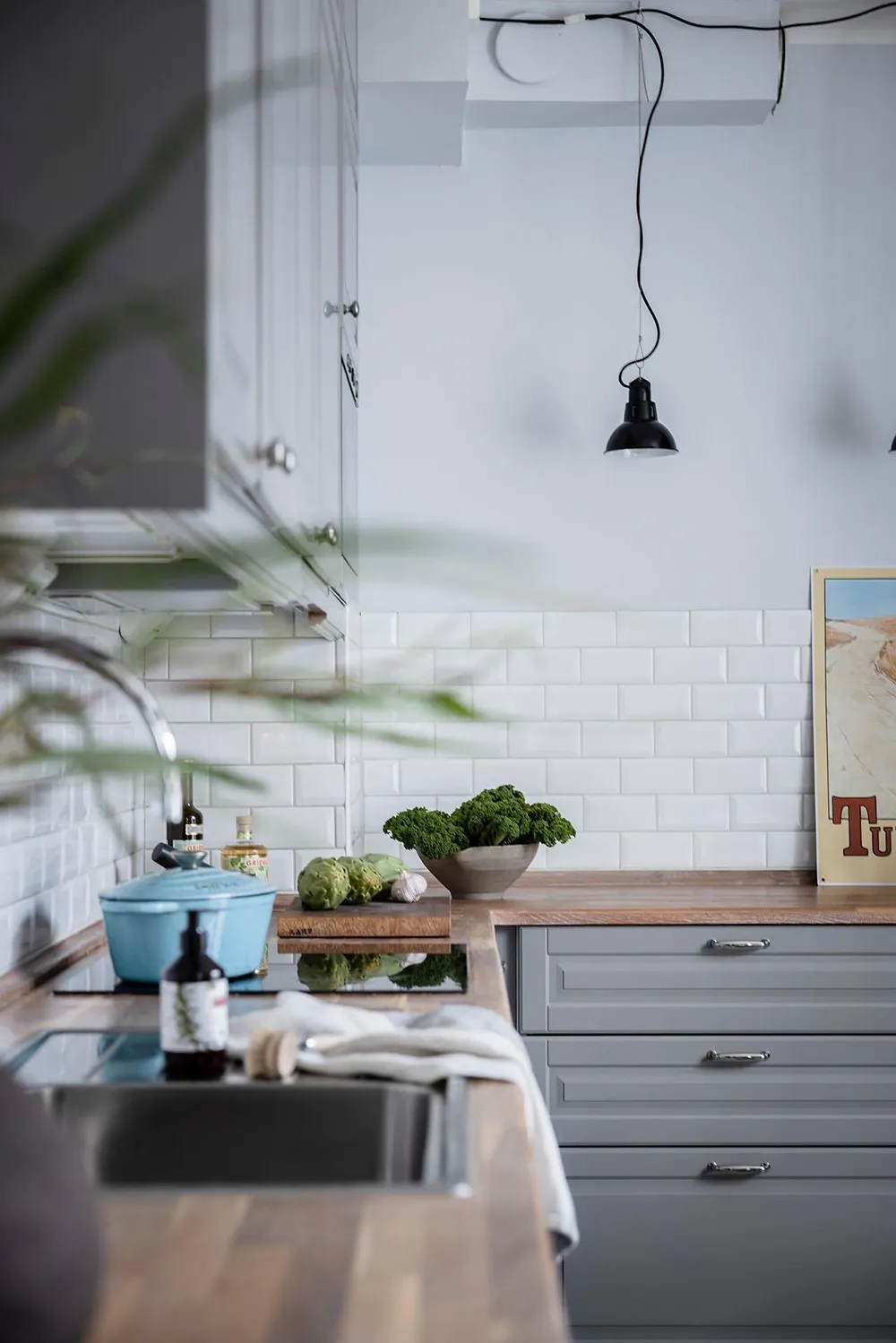 Контраст прохладной основы и теплых деталей наполнил эту шведскую квартиру приятной атмосферой с морозными зимними нотками.