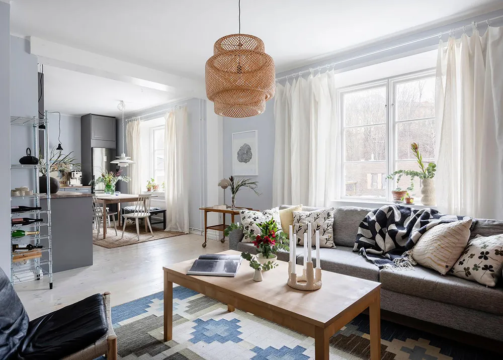 Красивый интерьер в прохладных оттенках в Гетеборге (70 кв. м)