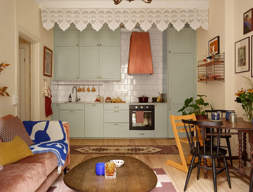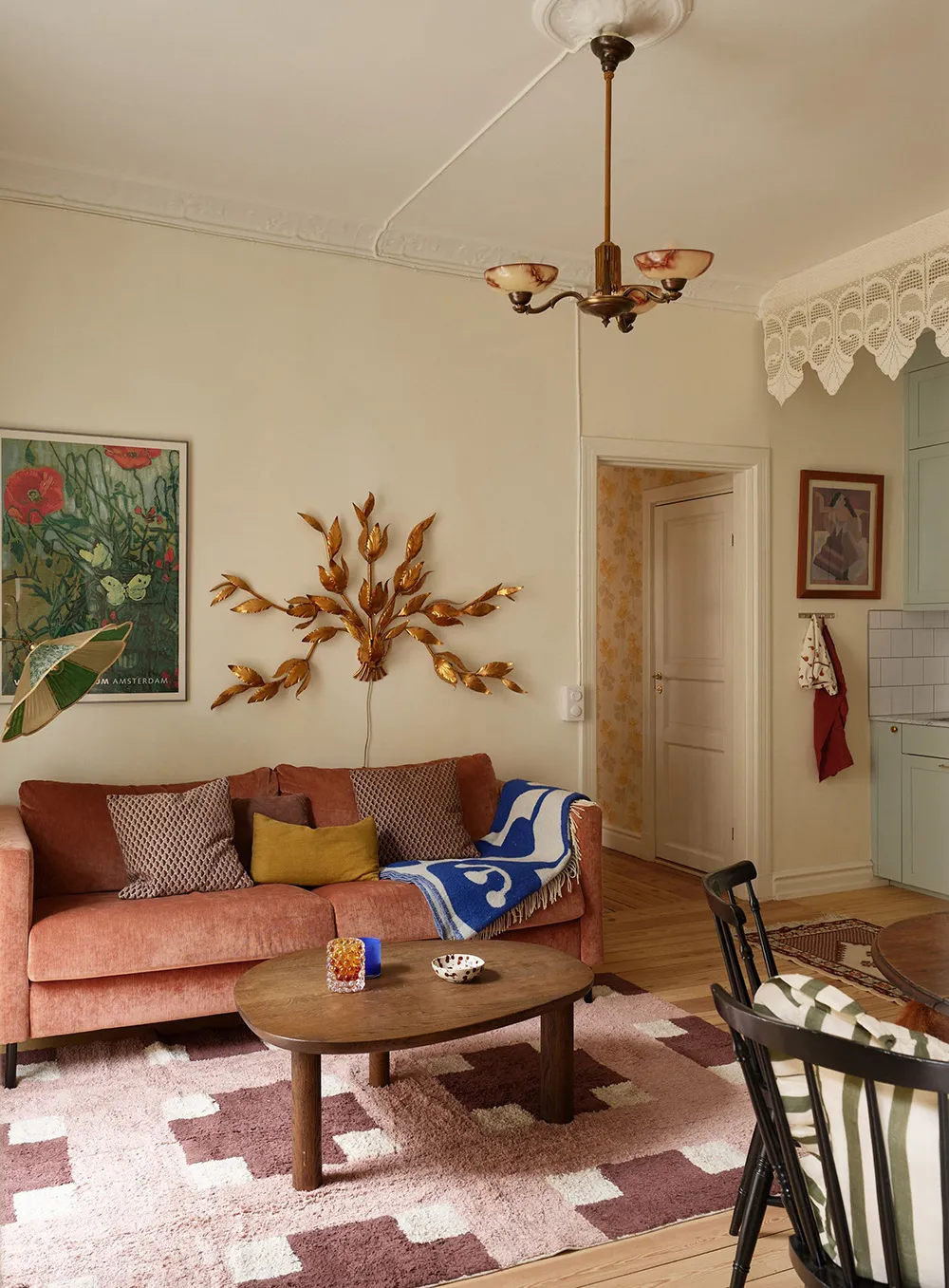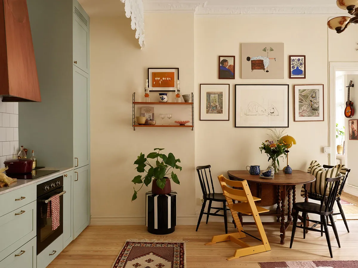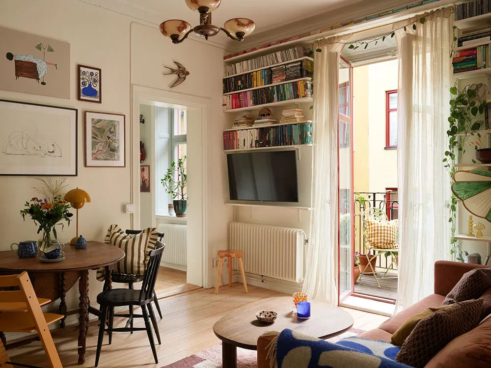 В этой очаровательной шведской квартире много декора на открытых полках, благодаря чему интерьер кажется очень живым и уютным.