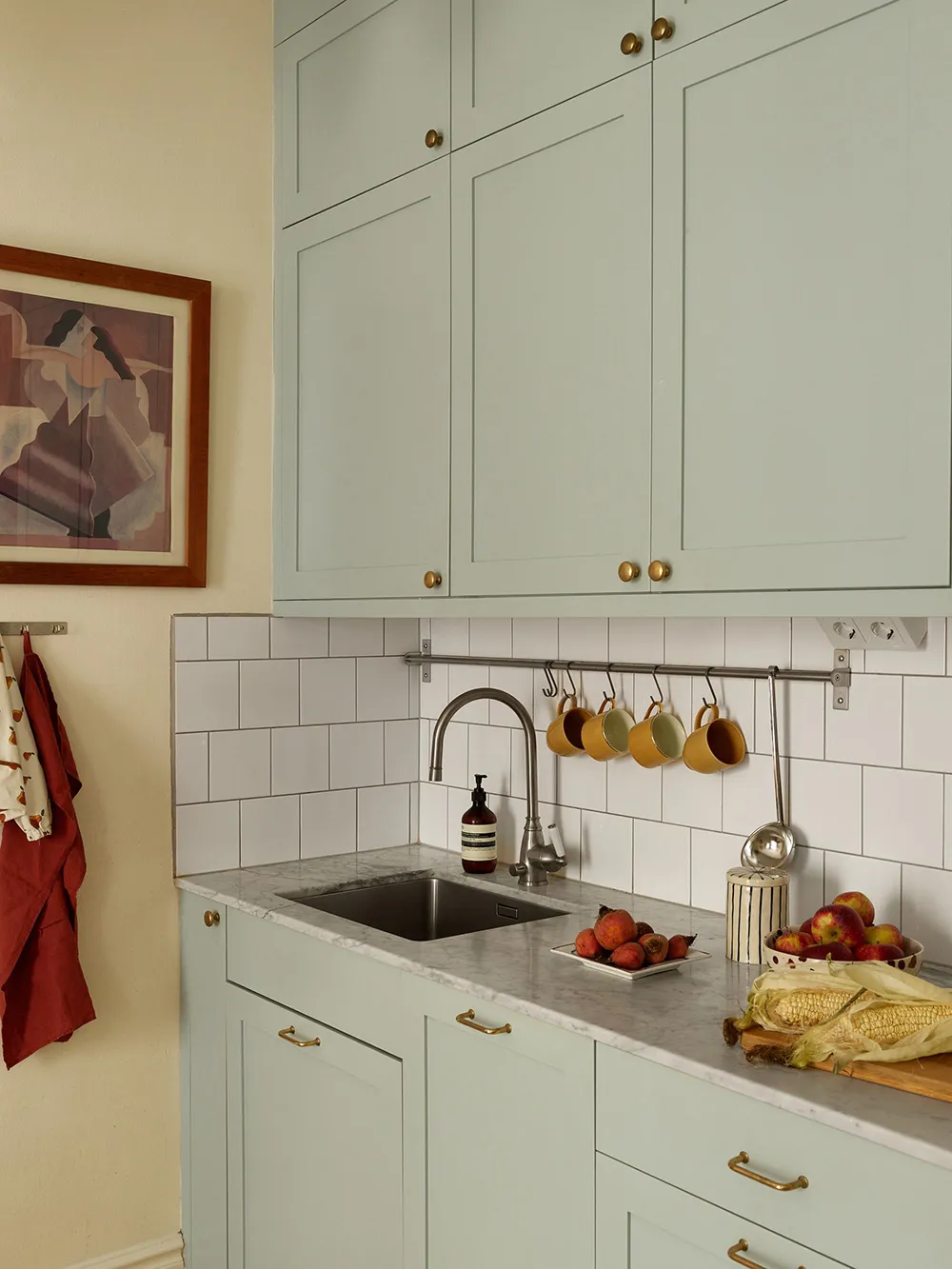 Библиотека и свежая цветовая гамма: уютная квартира в Стокгольме (58 кв. м)