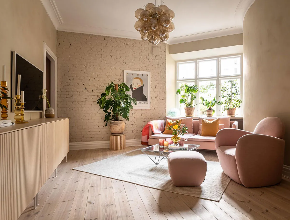 Необычная конфигурация комнат и розовый диван: квартира в Гетеборге (76 кв. м)