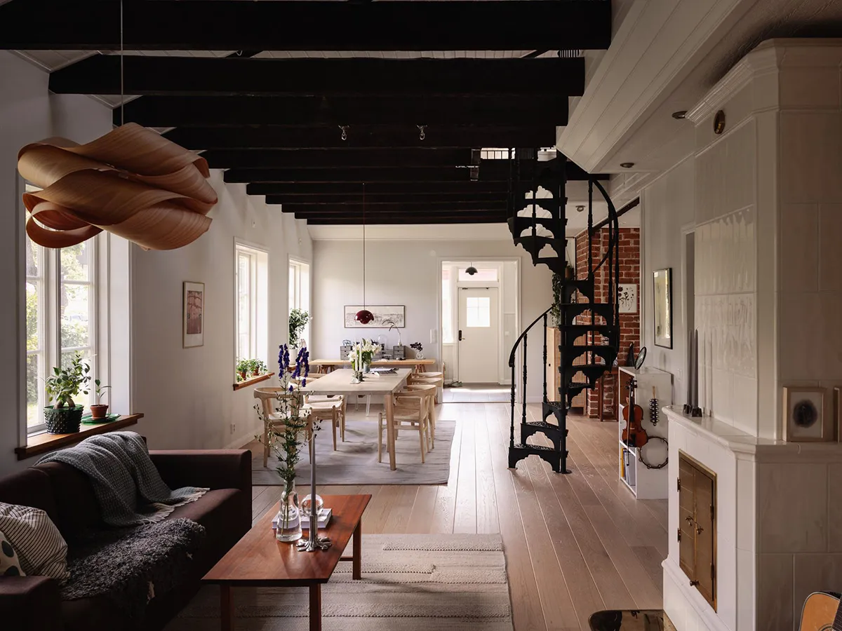 Молдинги, кирпич и мансарда: интересный интерьер в Швеции