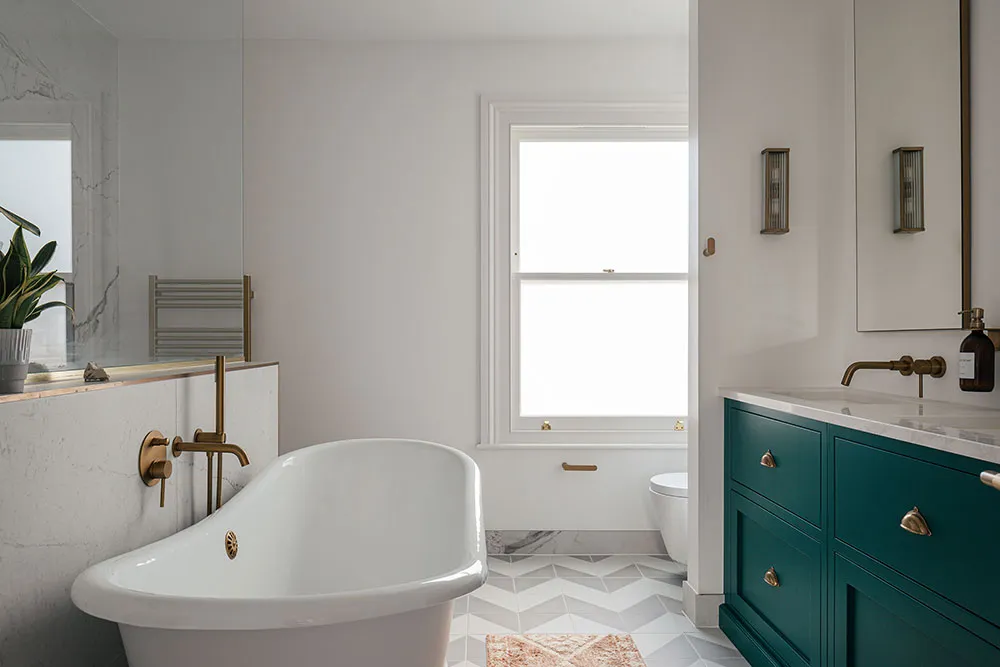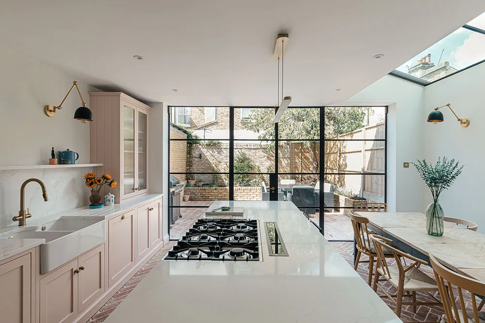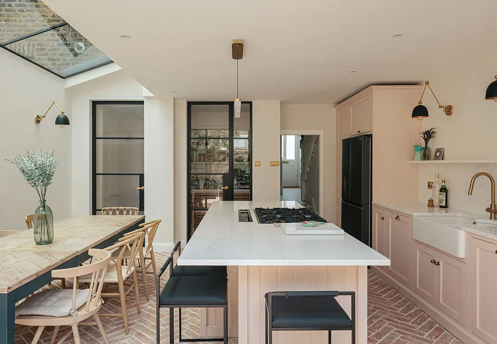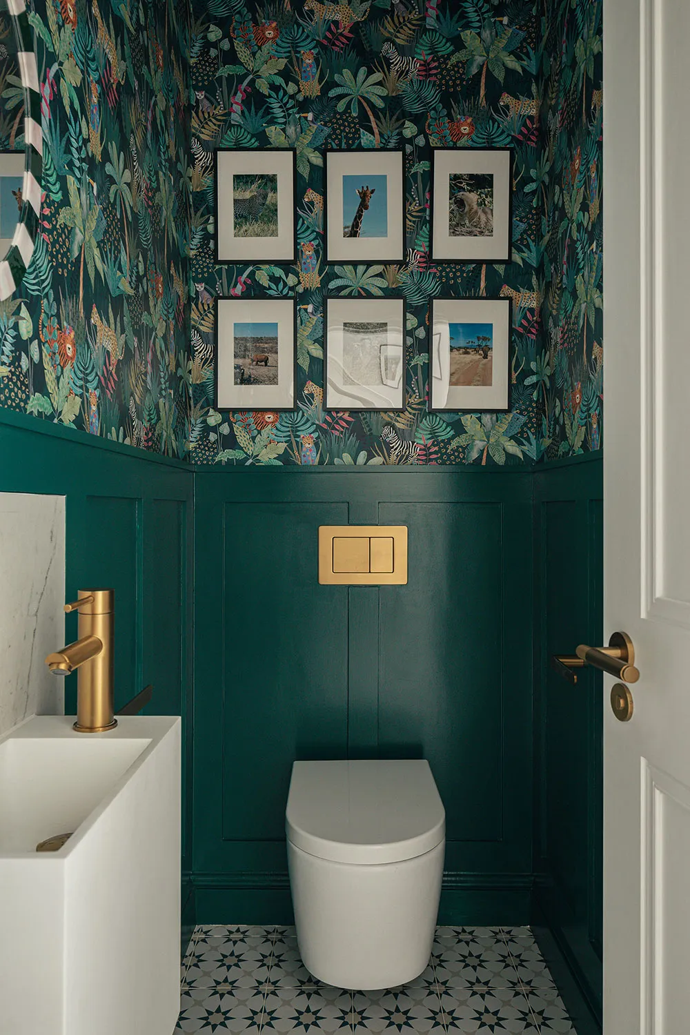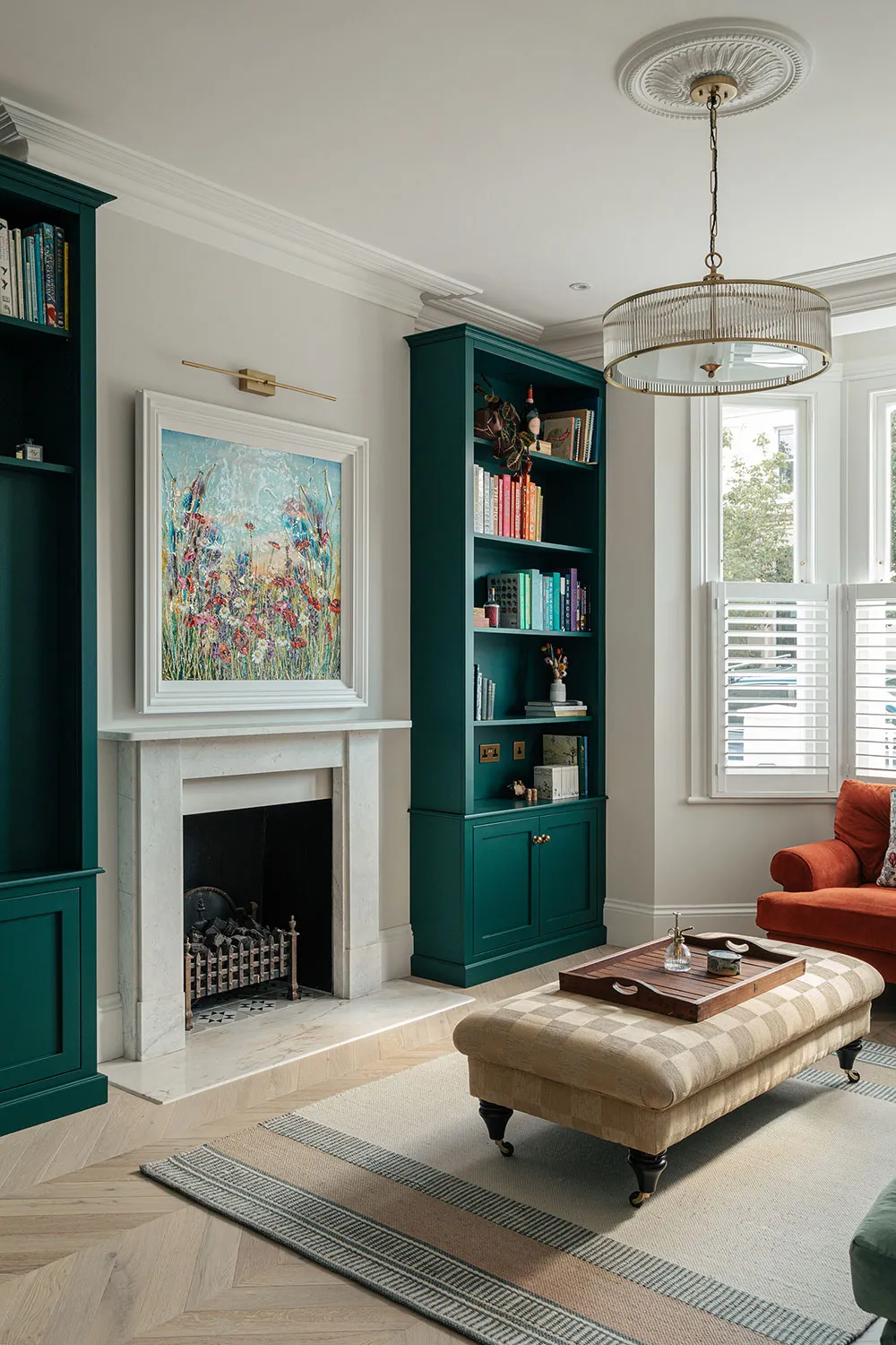 Красивый современный интерьер в Лондоне в зелёных и розовых тонах